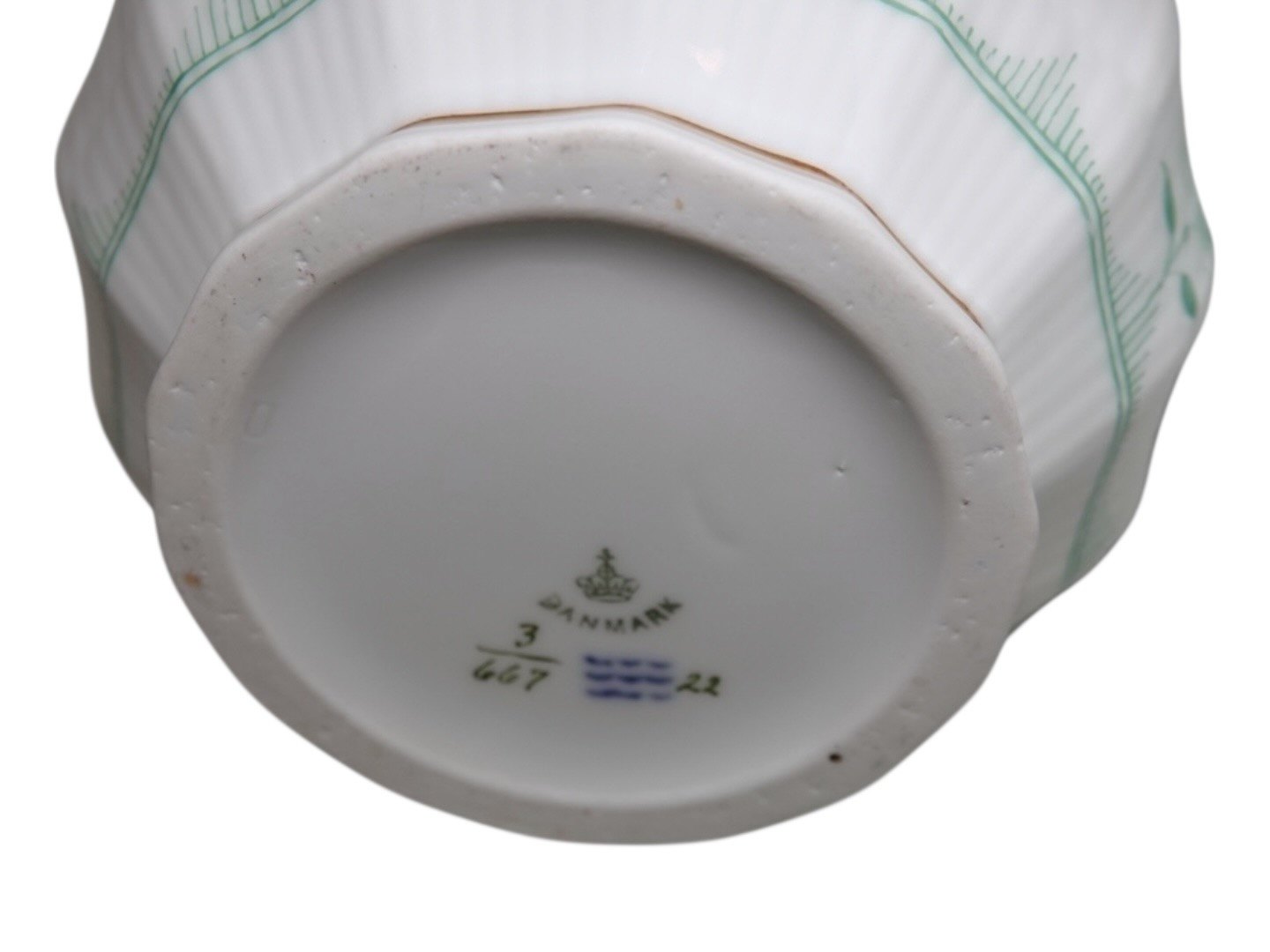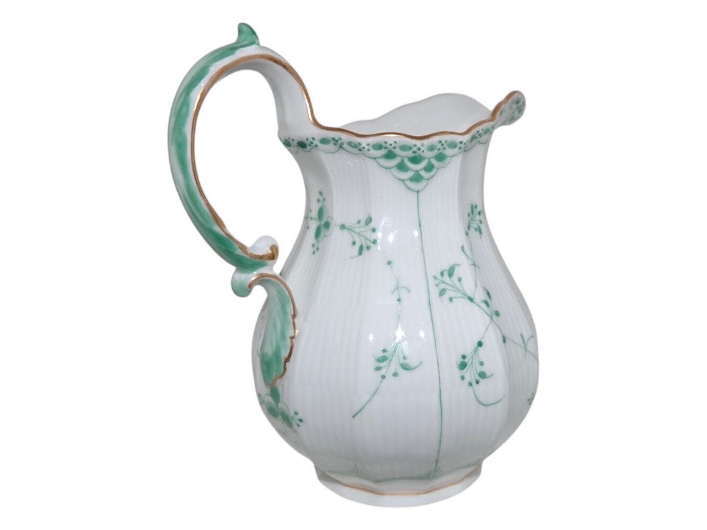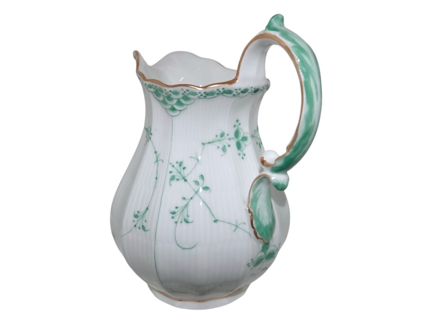 Beskrivelse: Royal Copenhagen Grøn Musselmalet Halvblonde med guldkant, mælkekande.