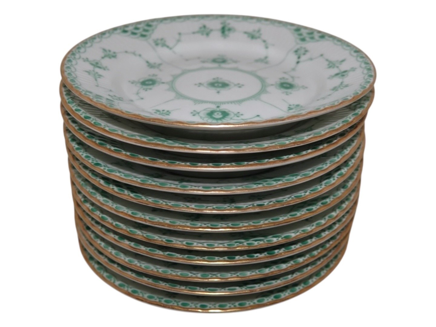 Beskrivelse: Royal Copenhagen Grøn Musselmalet Halvblonde med guldkant, kagetallerken.