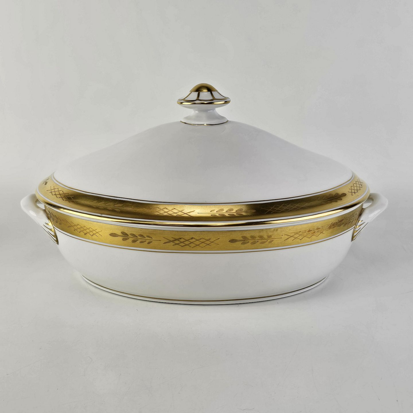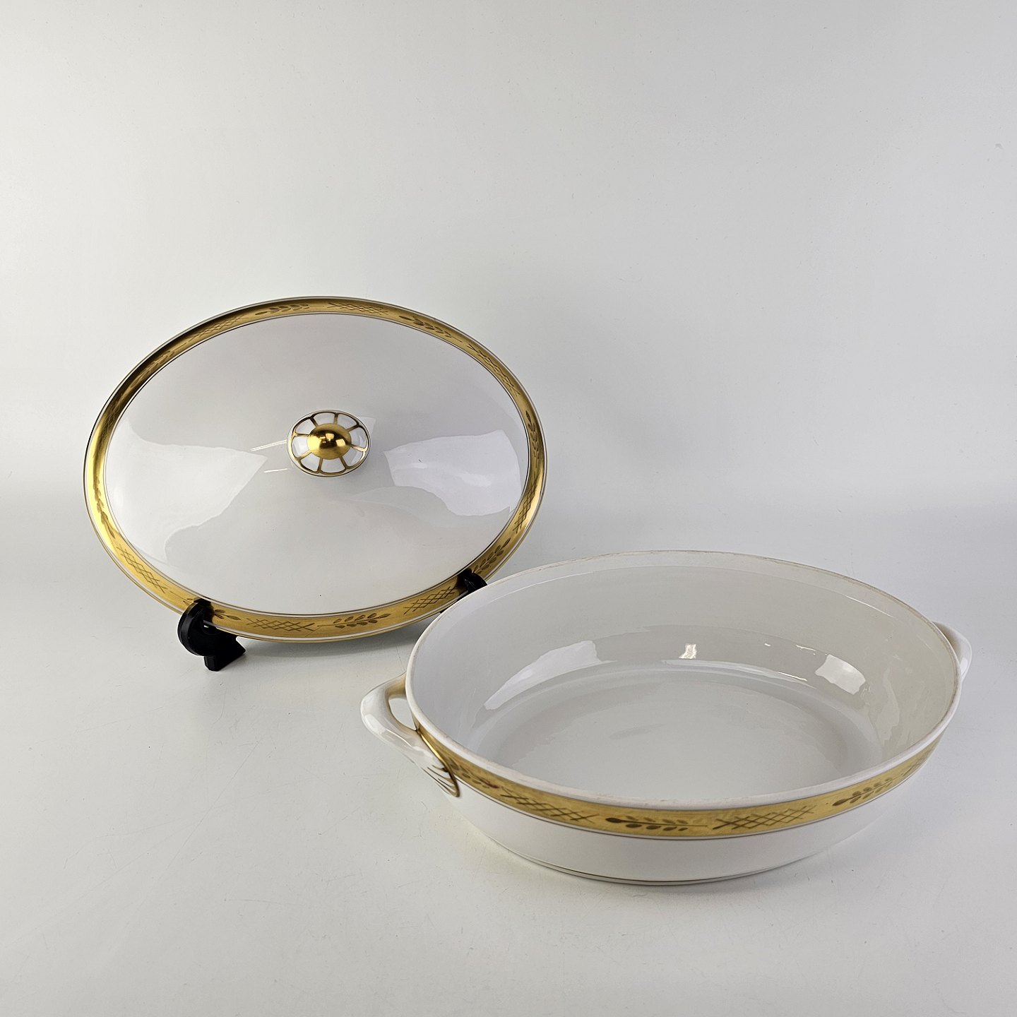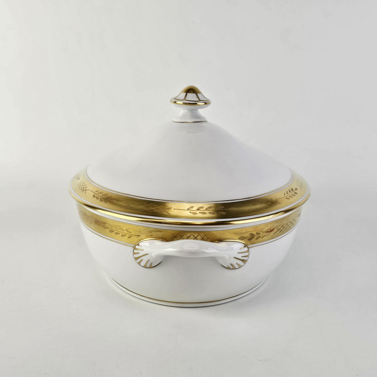Stel nr. 607 er i hvidt porcelæn og har en guldkant med bladværk
