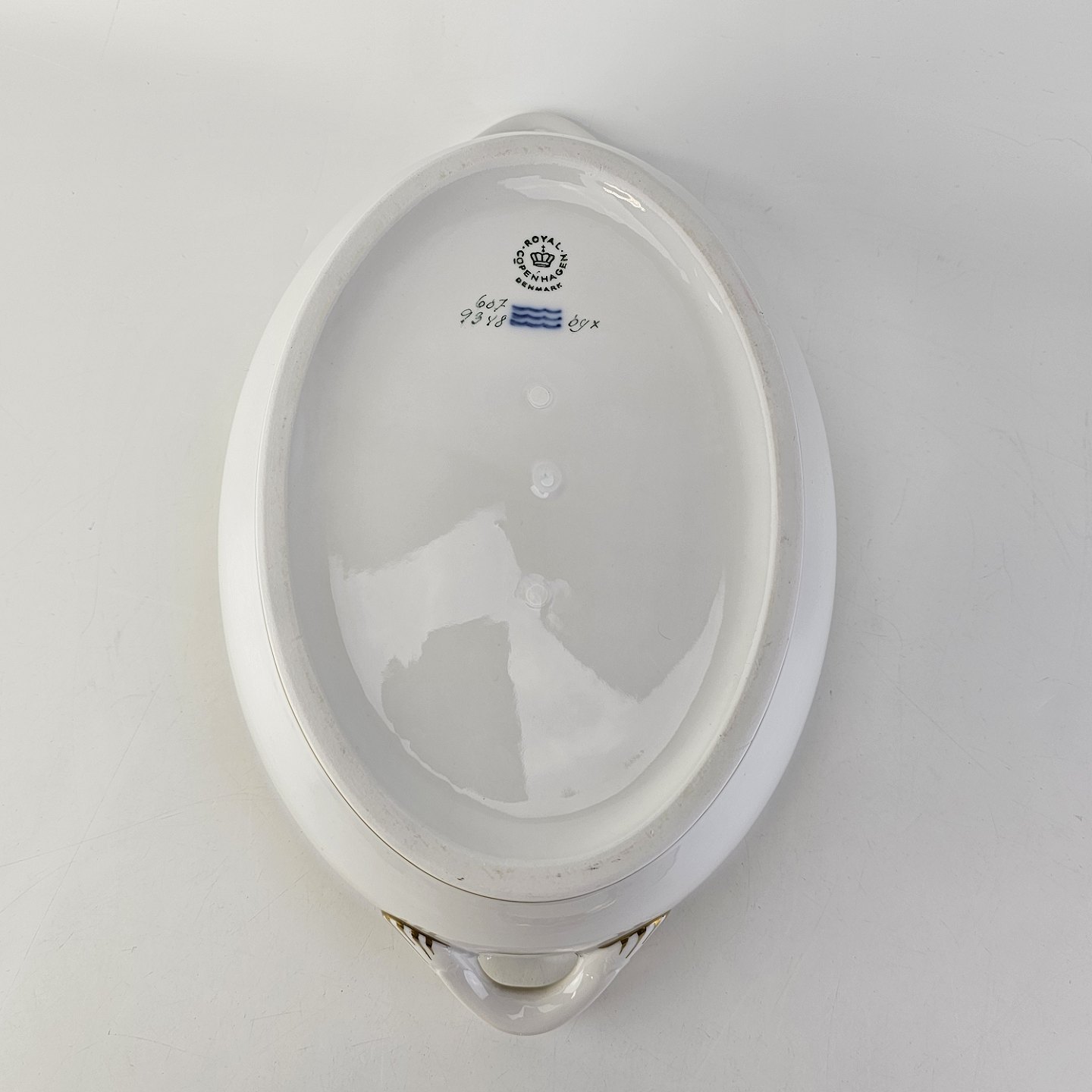 Beskrivelse: Lågfad i kongeligt porcelæn fra stel nr. 607