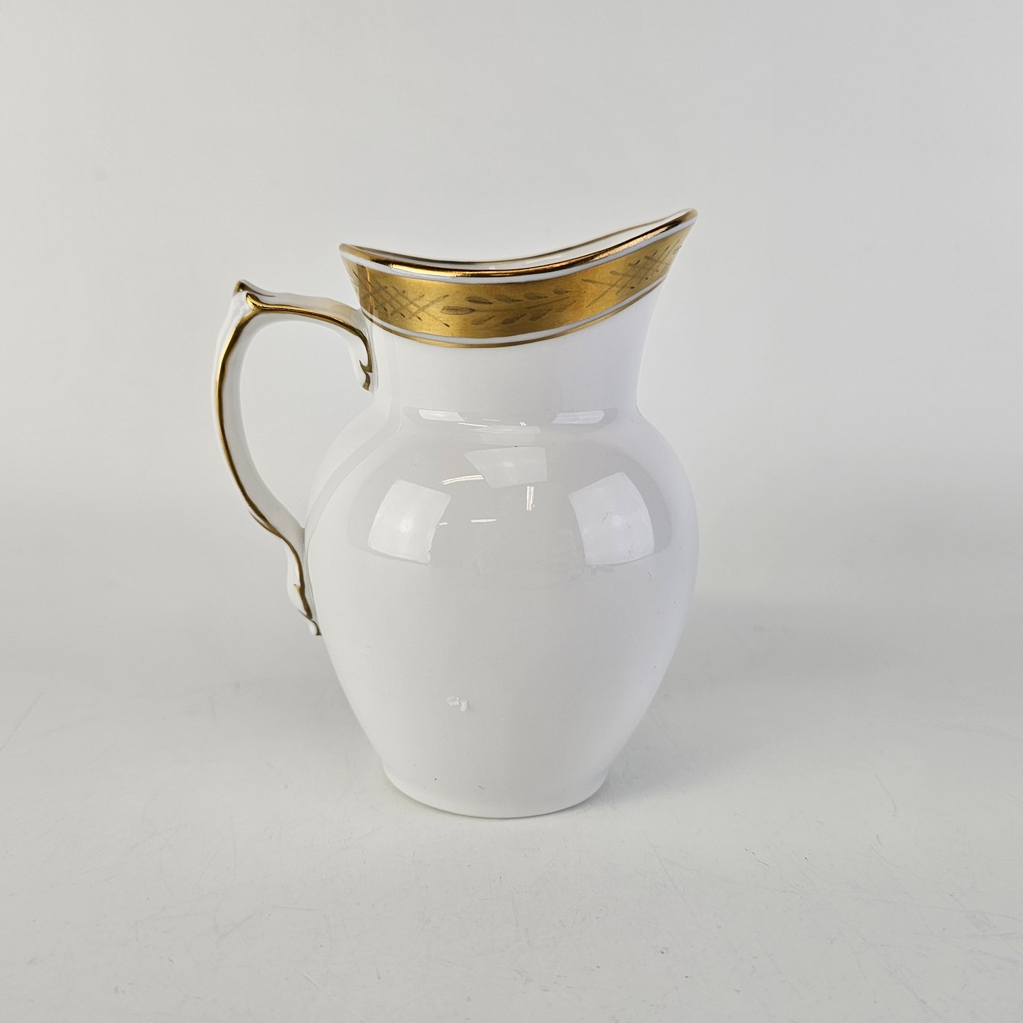 Stel nr. 607 er i hvidt porcelæn og har en guldkant med bladværk