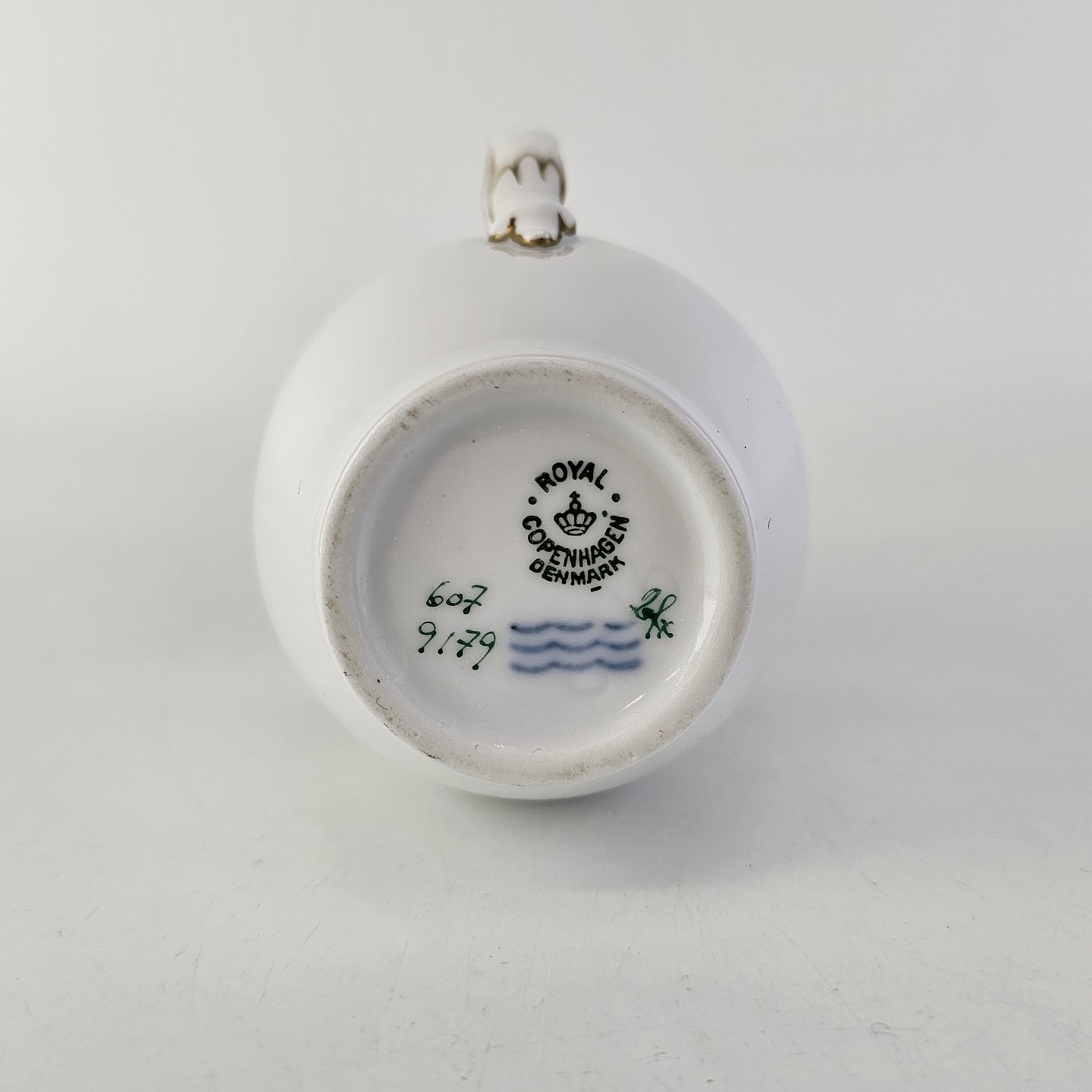 Beskrivelse: Flødekande i kongeligt porcelæn fra stel nr. 607