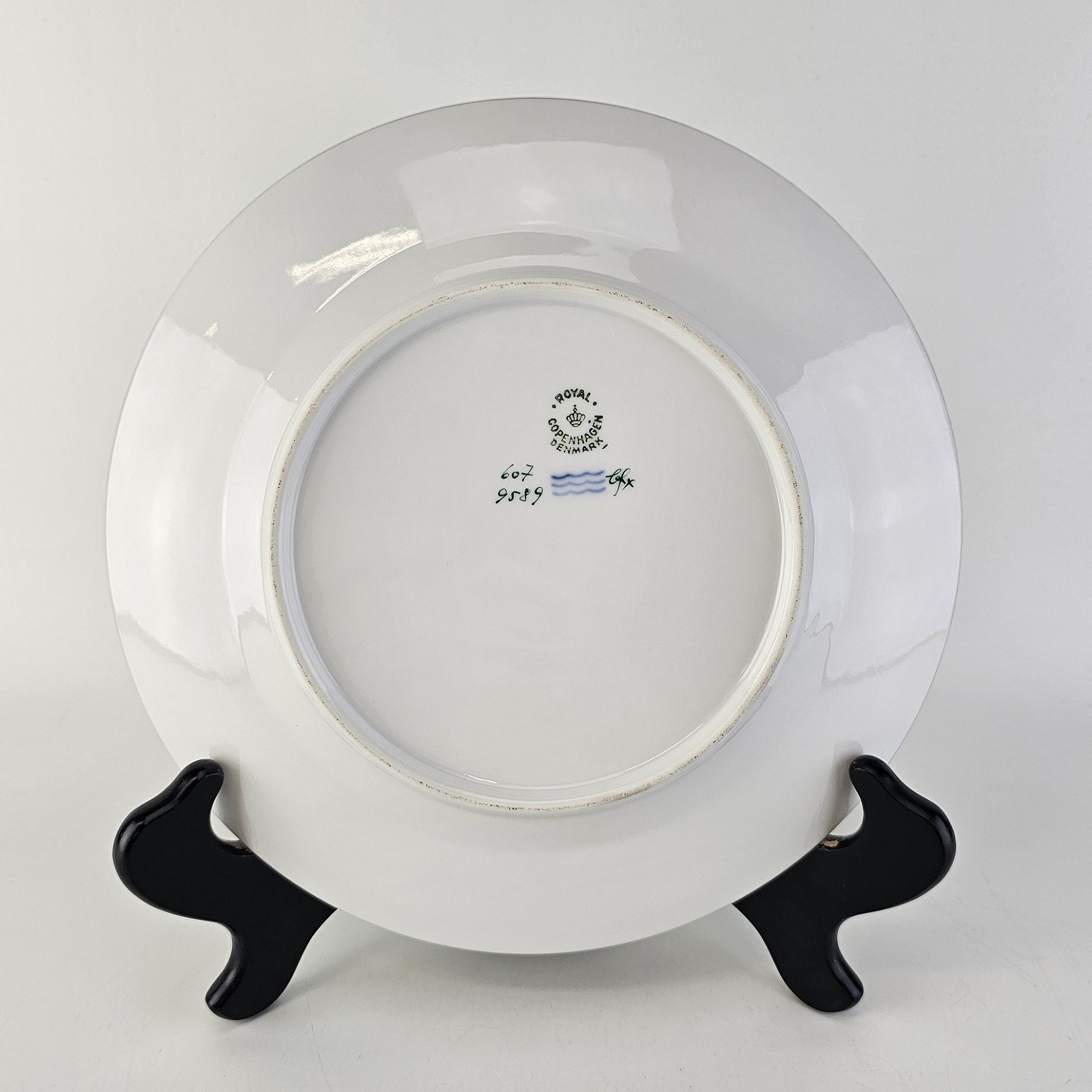 Beskrivelse: Flad frokosttallerken i kongeligt porcelæn fra stel nr. 607