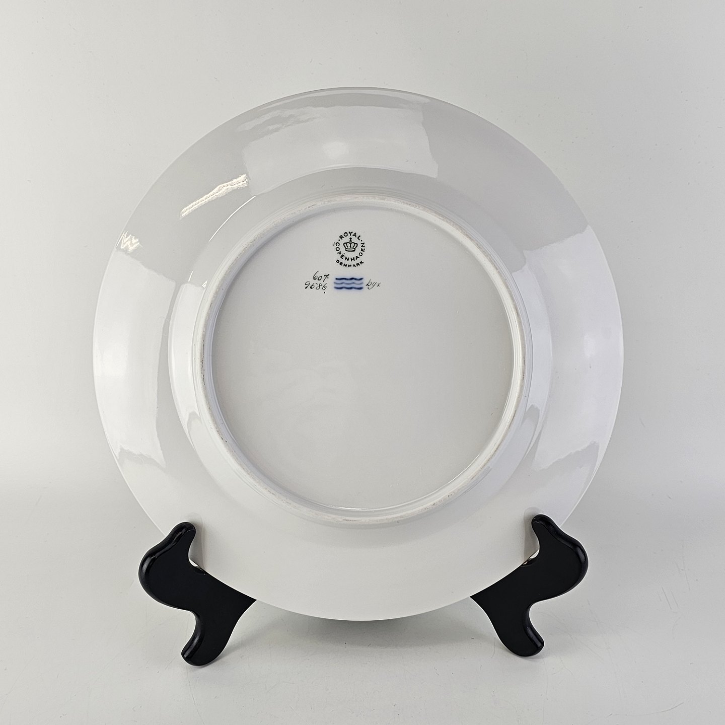 Beskrivelse: Flad middagstallerken i kongeligt porcelæn fra stel nr. 607