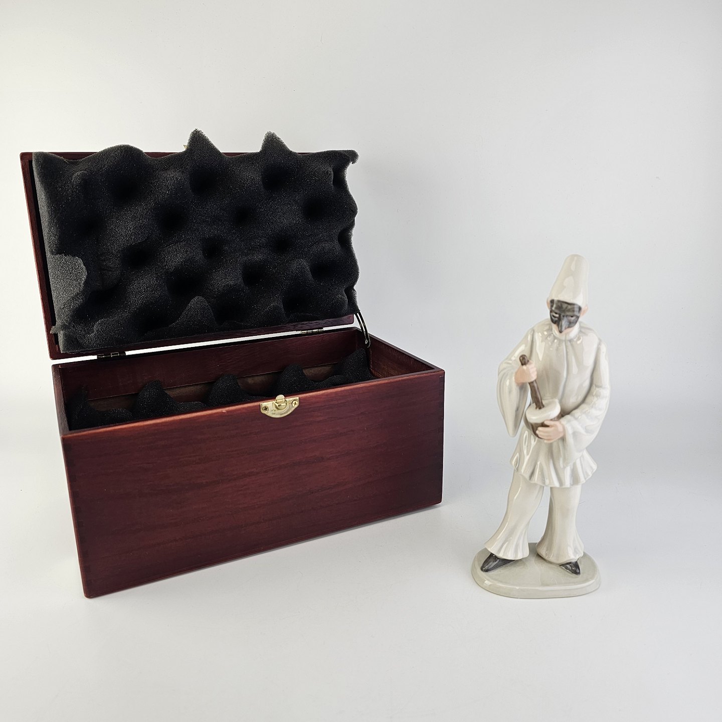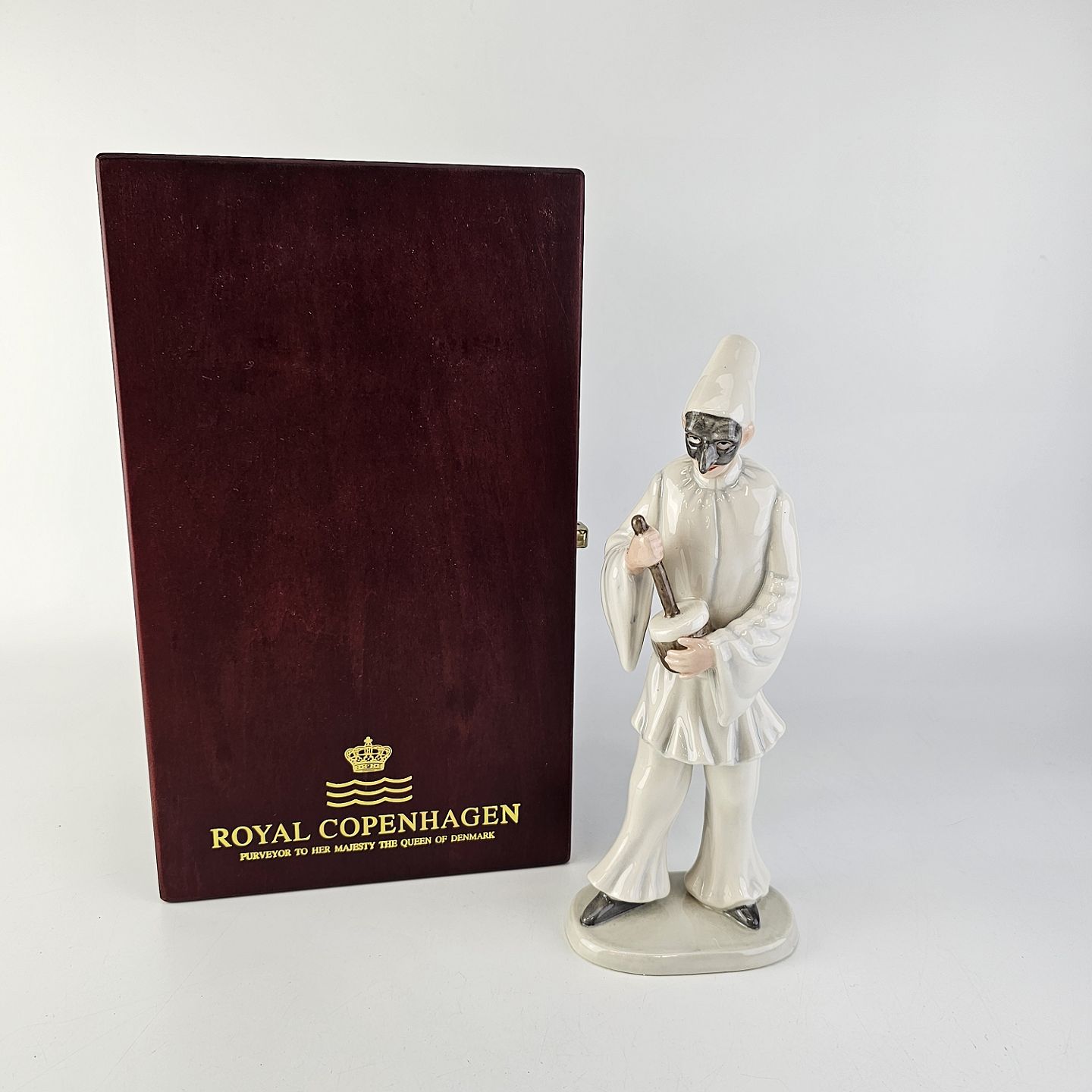 Beskrivelse: Figur i porcelæn med motiv af Pulcinella fra La Commedia dell'Arte Italiana
