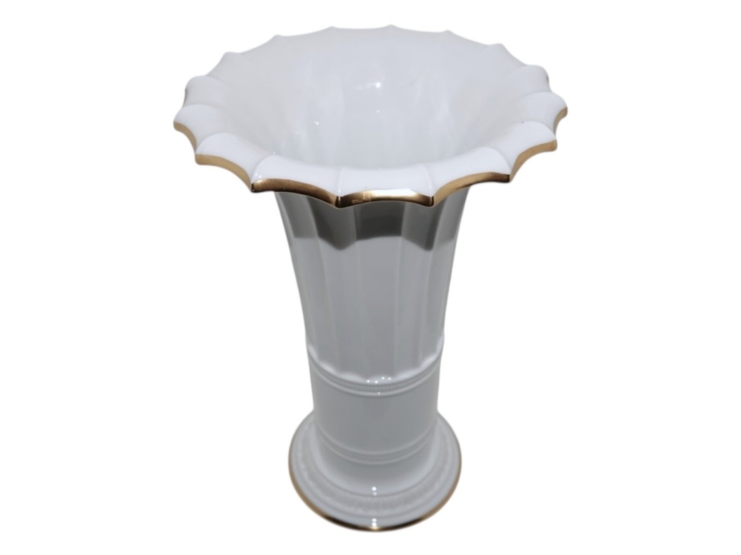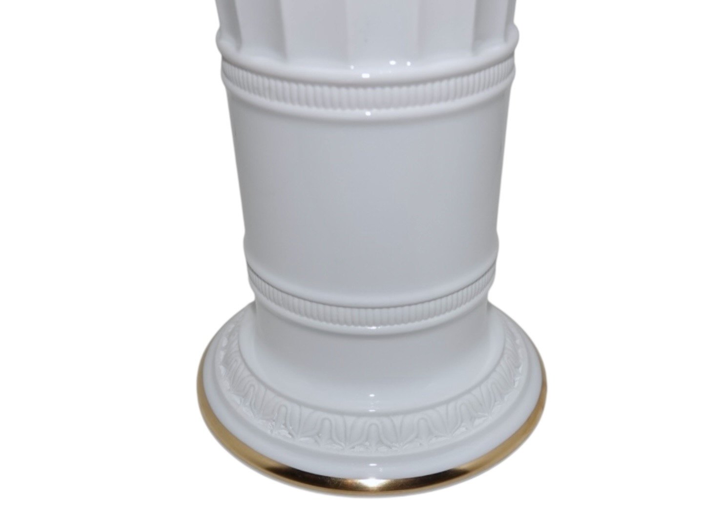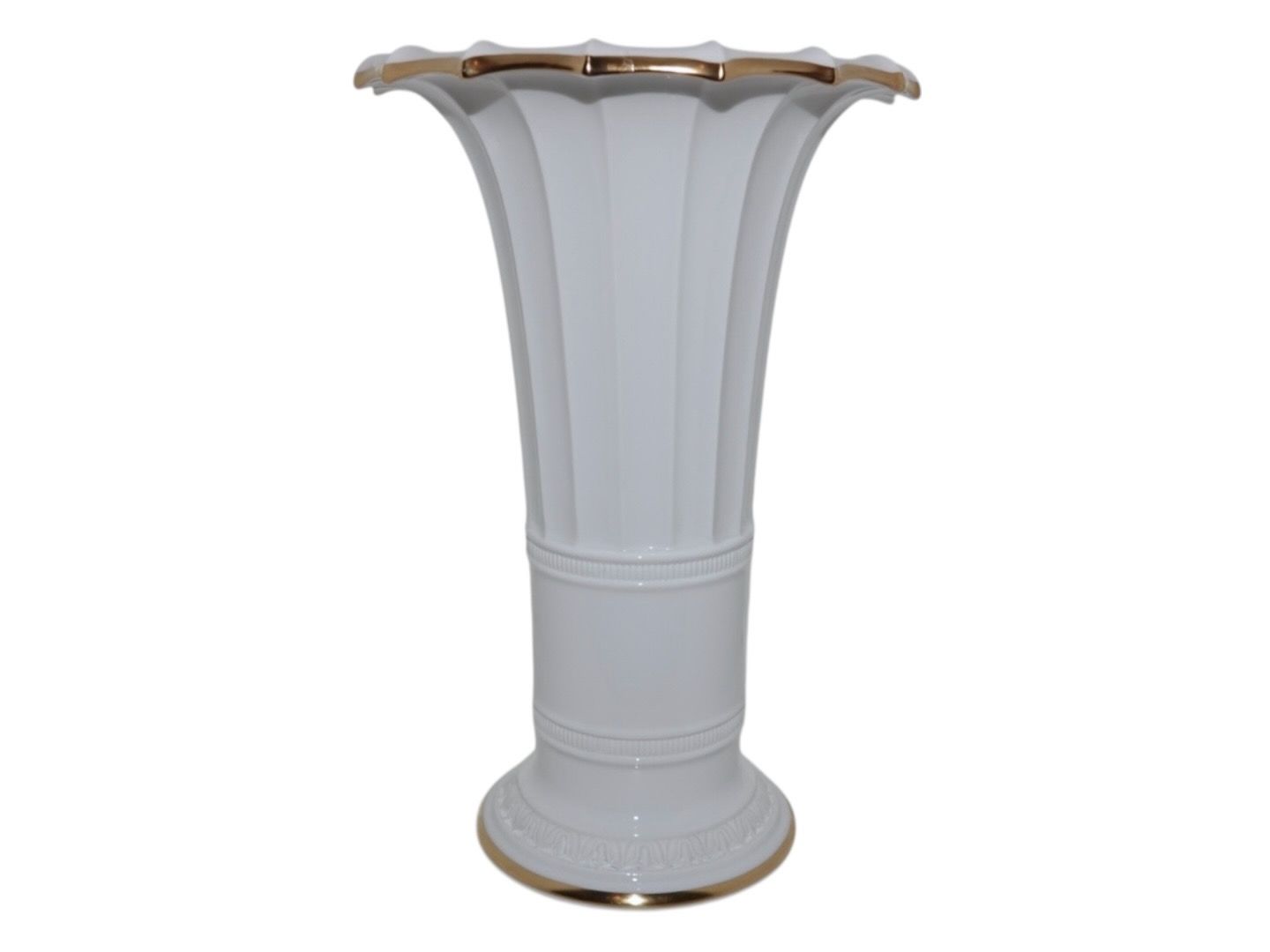 Description: Royal Copenhagen tall Hetsch vase with gold edge.