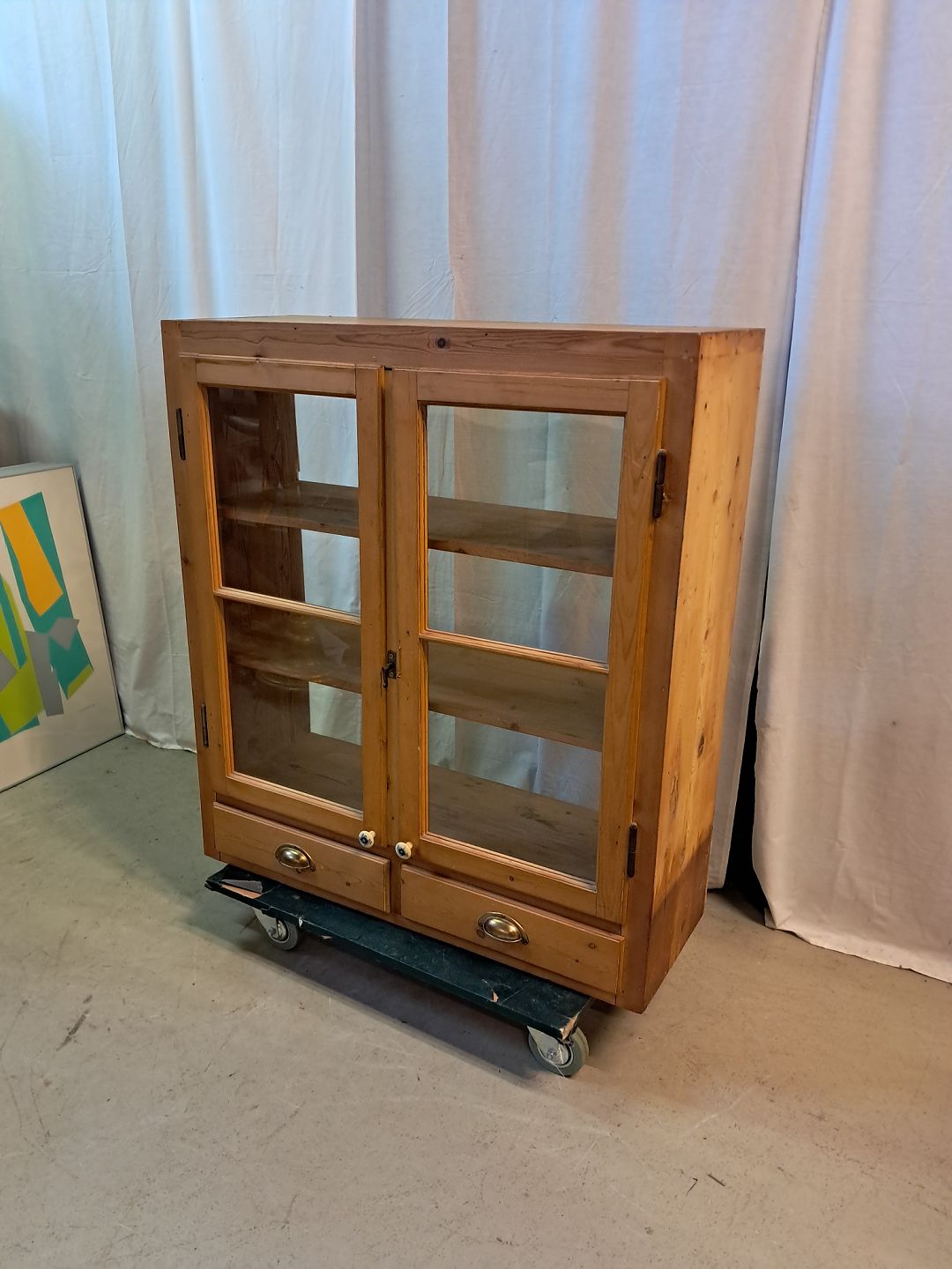Beskrivelse: Gammelt køkkenskab i massivt fyrretræ, fra 1920erne.
