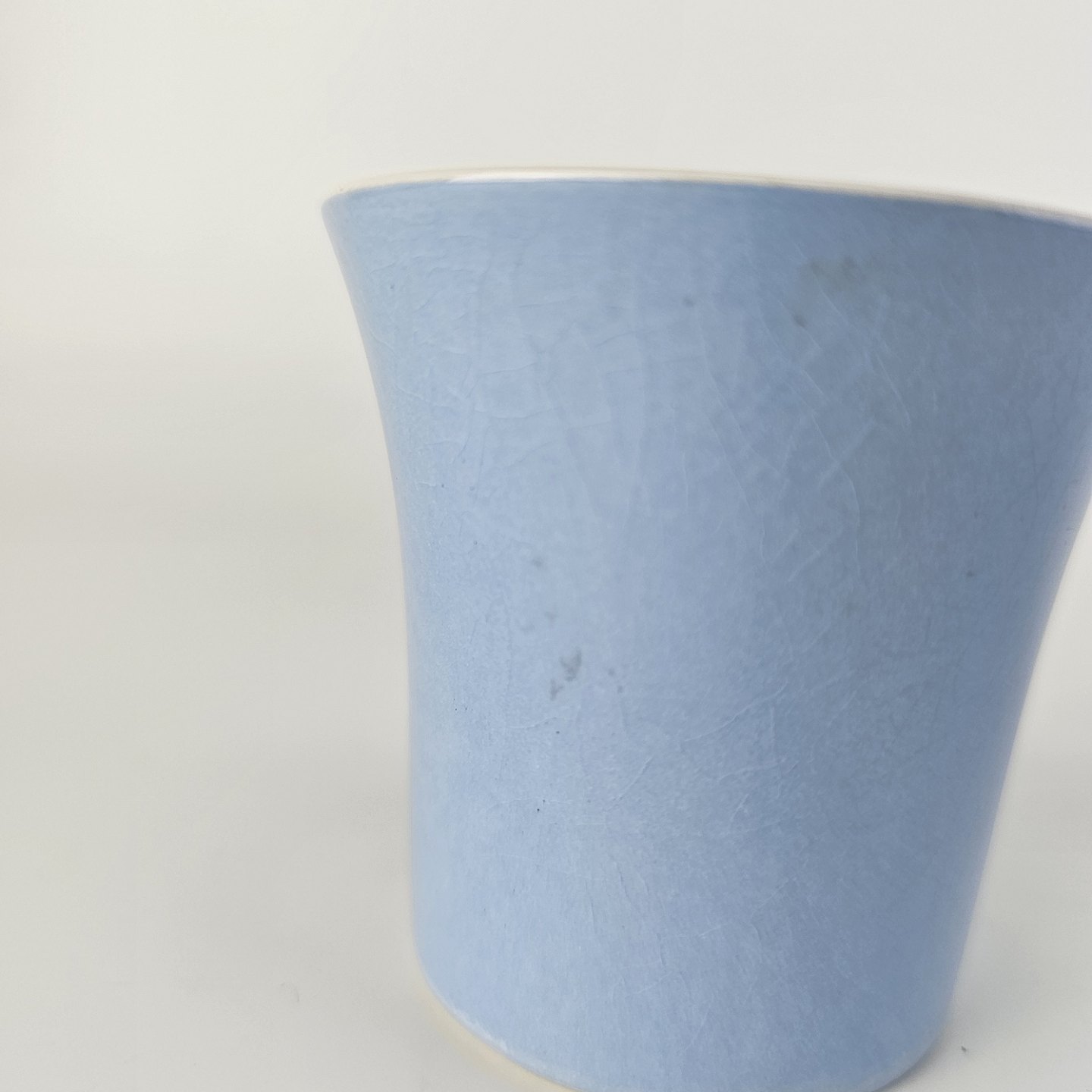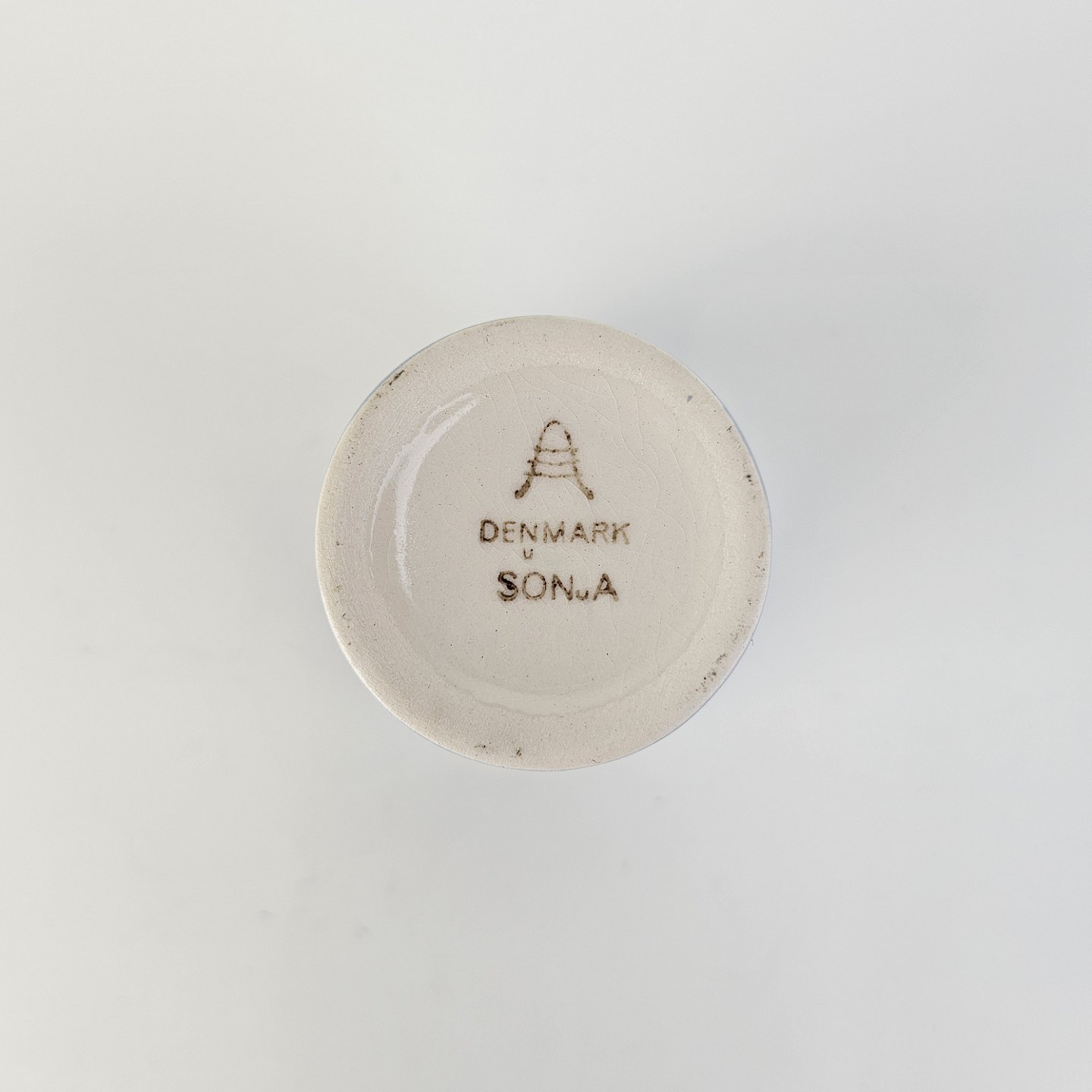 Fremstår med krakeleringer i glasuren og små prikker i bunden