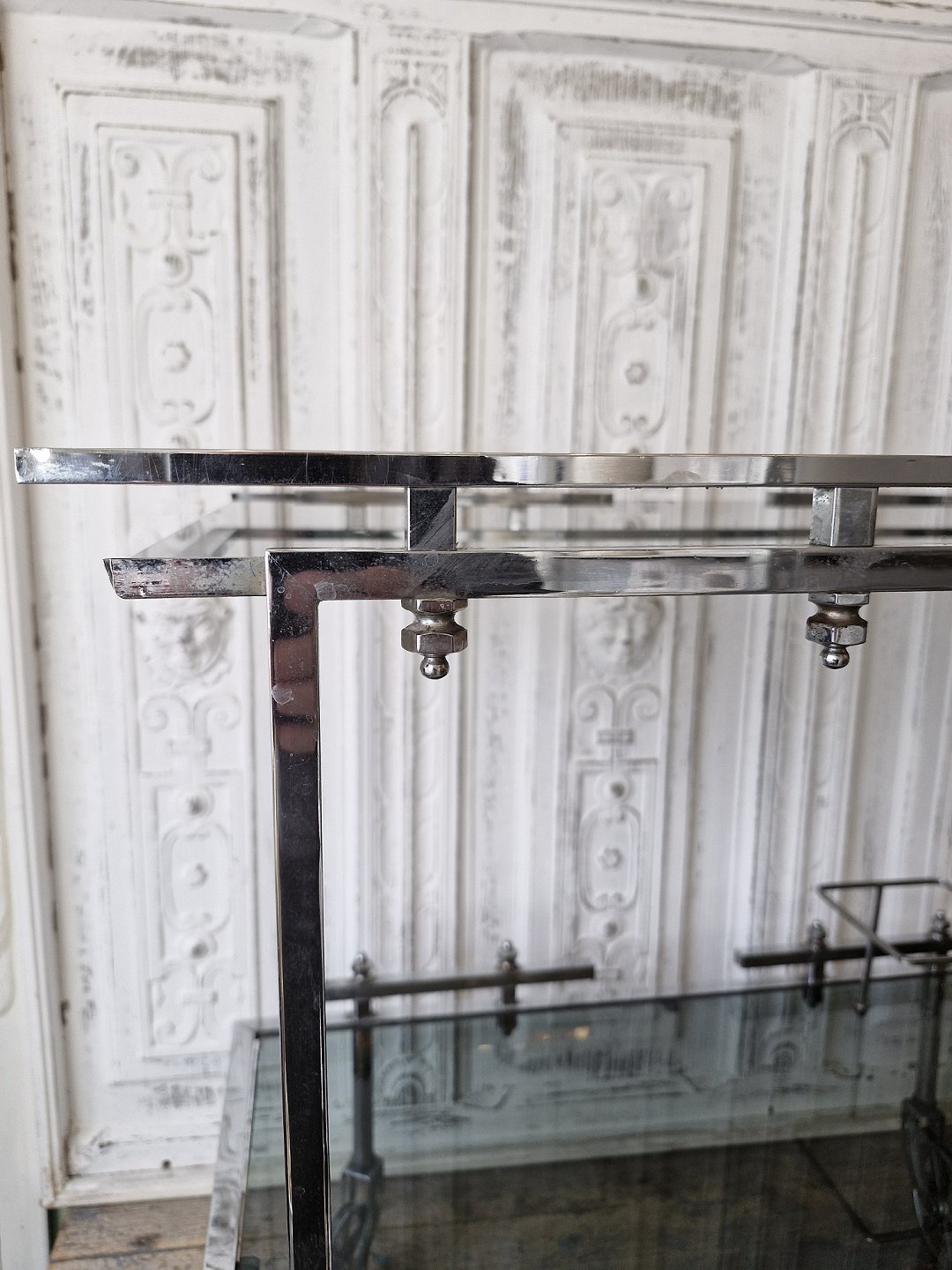 Vintage barbord med stel og hjul i forkromet stål
