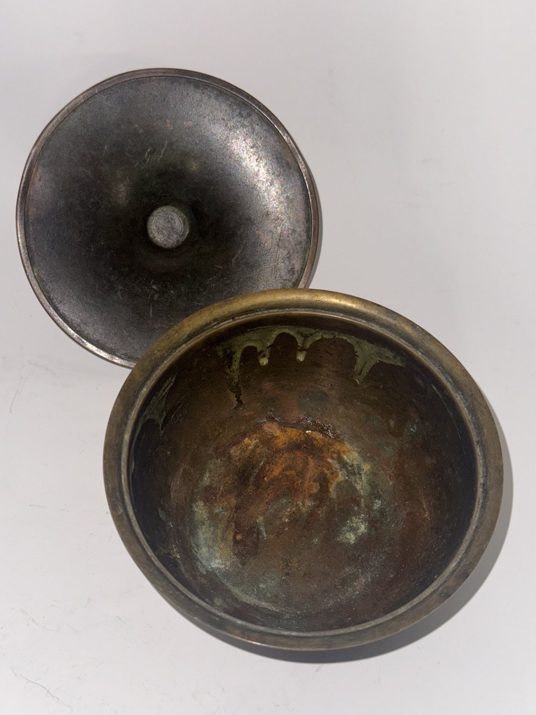 Beskrivelse: Bronzepatineret just Andersen skål. Fremstår i god stand med almindelige brugsspor. Fremstillet omkring 1940. Fabriksmærket på bunden med det velkendte fabrikslogo, modelnummer 1615 samt LB, der står for Let Bronce. H. 7 cm Ø. 11 cm