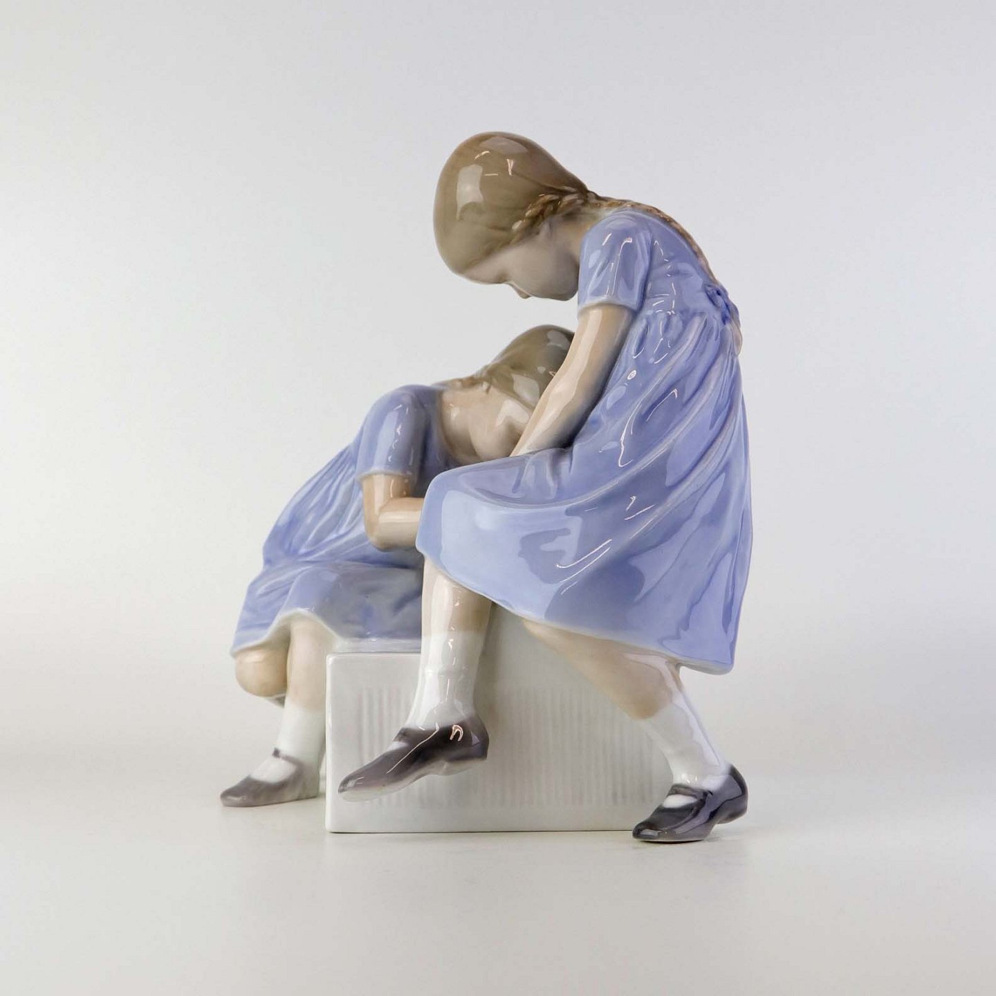Beskrivelse: Figur i porcelæn med motiv af to piger på en tappesten. Nr. 1871