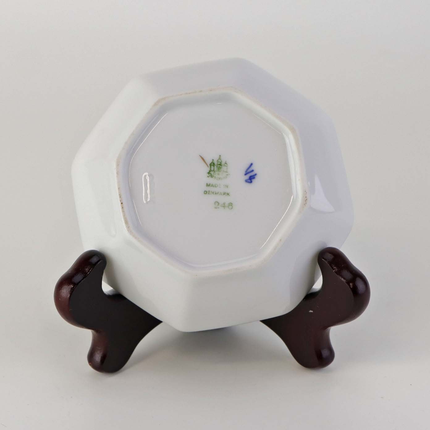 Beskrivelse: Kantet skål til kaviar i porcelæn fra stellet Kipling. Nr. 246