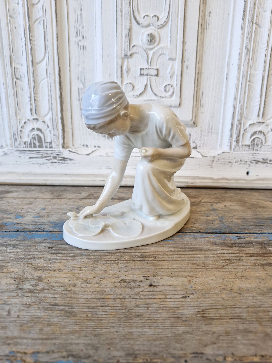 B&G sjælden Art Nouveau figur - Pige der plukker åkander no. 1685 - OBS fremstår med skade