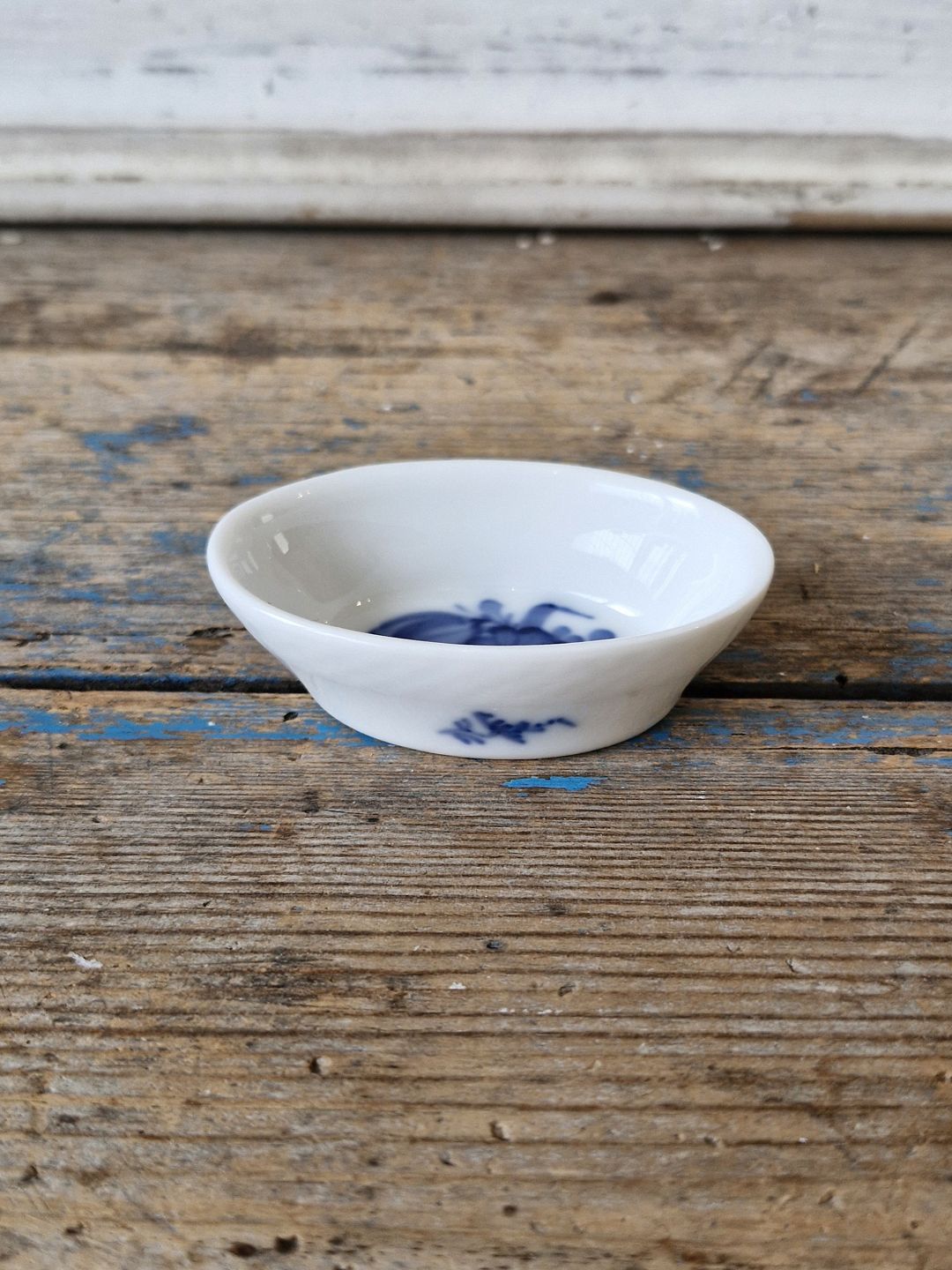 Beskrivelse: Royal Copenhagen Blå Blomst flettet saltkar