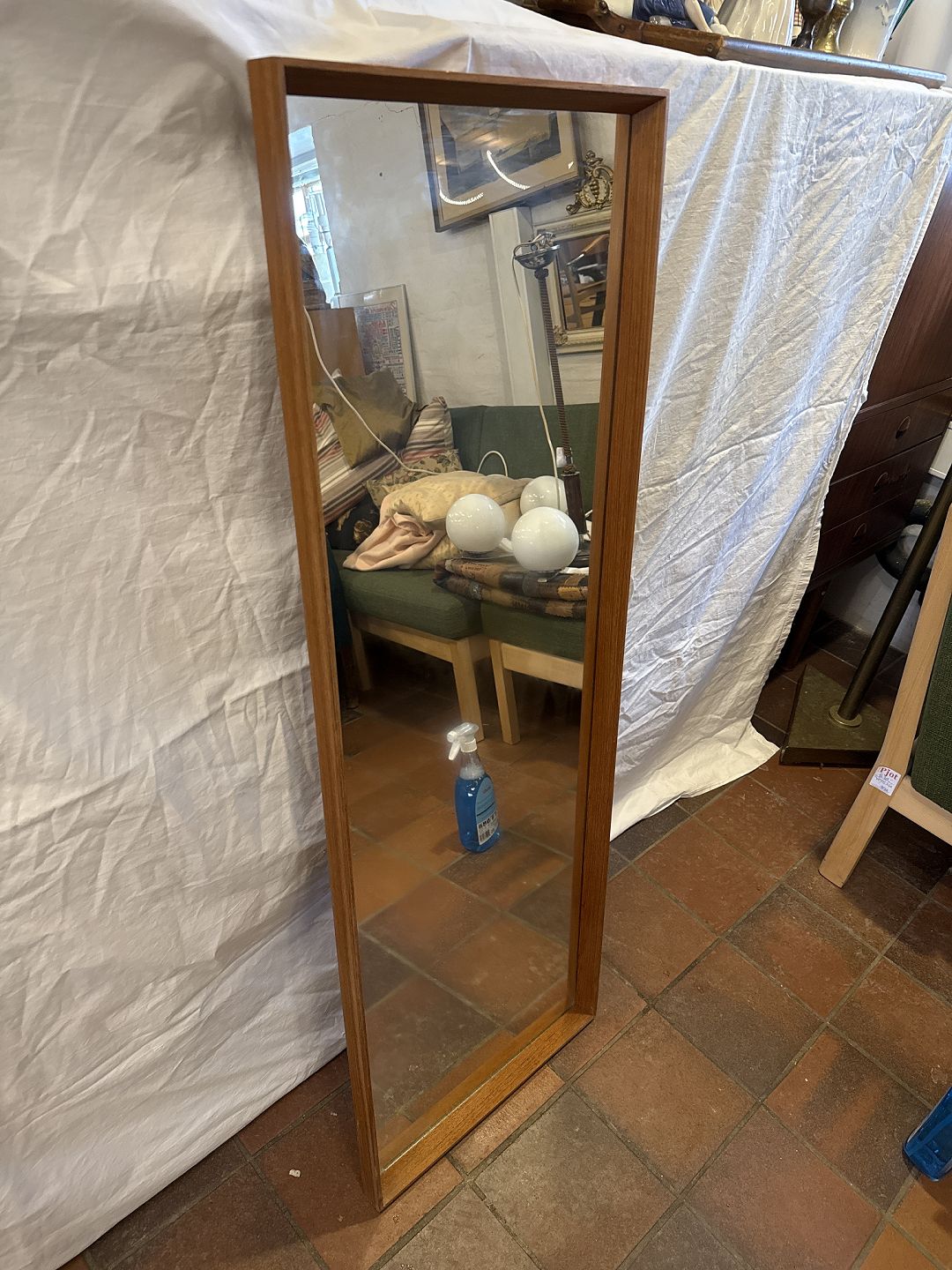 Beskrivelse: Dansk møbelproducent spejl m. ramme i teak.