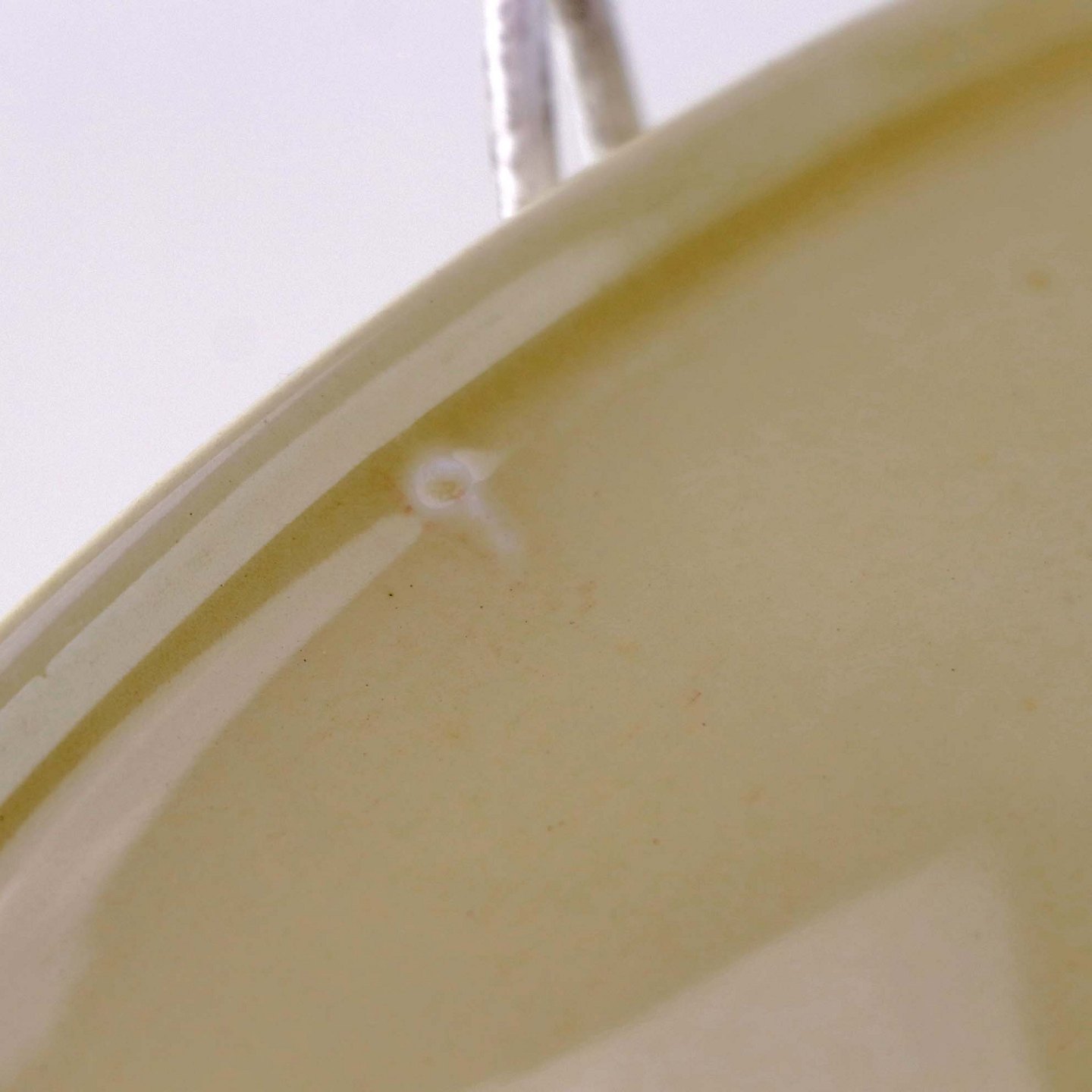 Fremstår med krakeleringer og bruneringer under glasuren.