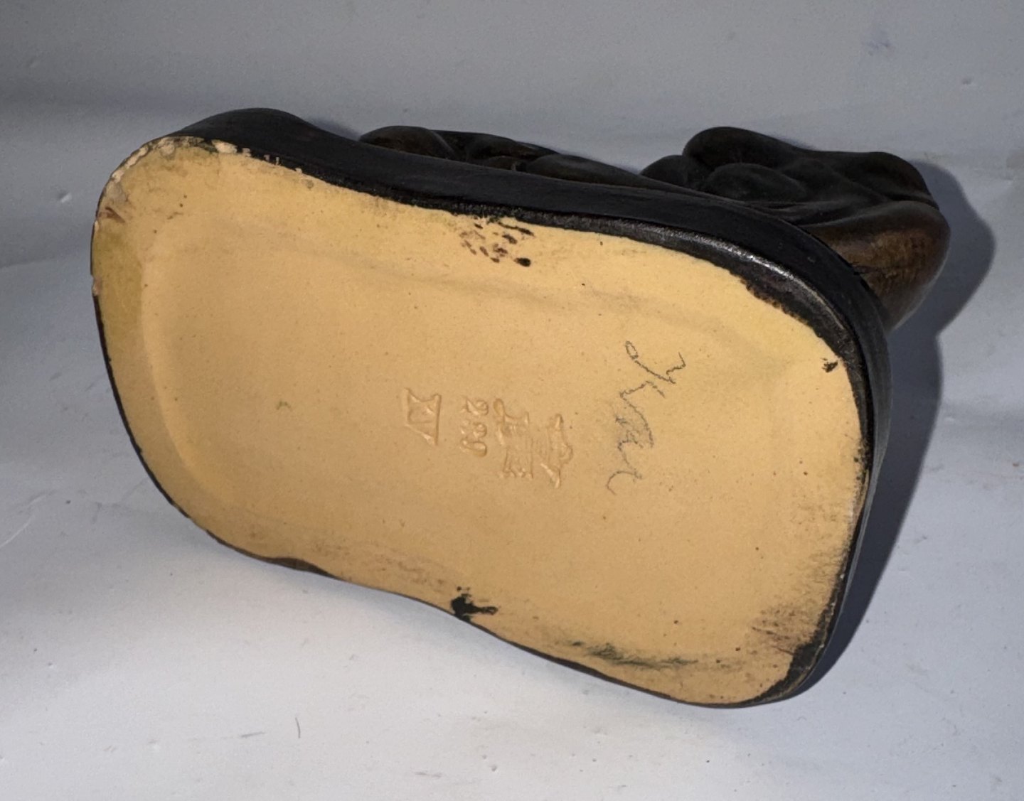 Matchbox holder in ceramic from Peter Ipsens Enke. Appears in good condition without damage. However, has some signs of wear on the edge - a few surface “needlesticks”. Factory mark on the bottom with the factory logo PIE as well as a crown and model number 239. Dimensions: H. 6.6 cm, W. 6.8 cm and L. 11.5 cm.