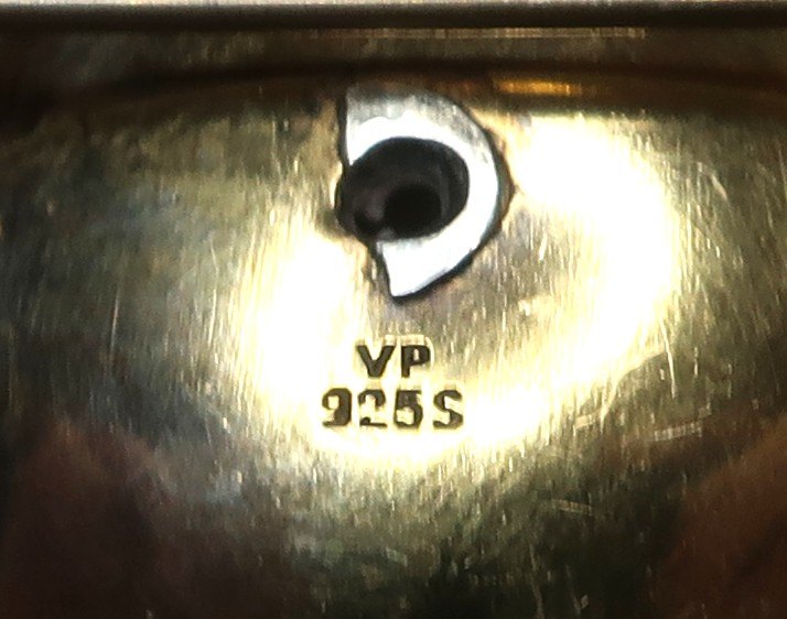 Beskrivelse: Viggo Pedersen (VP). Marguerit broche i sterling sølv forgyldt (925). Diameter 50 mm.