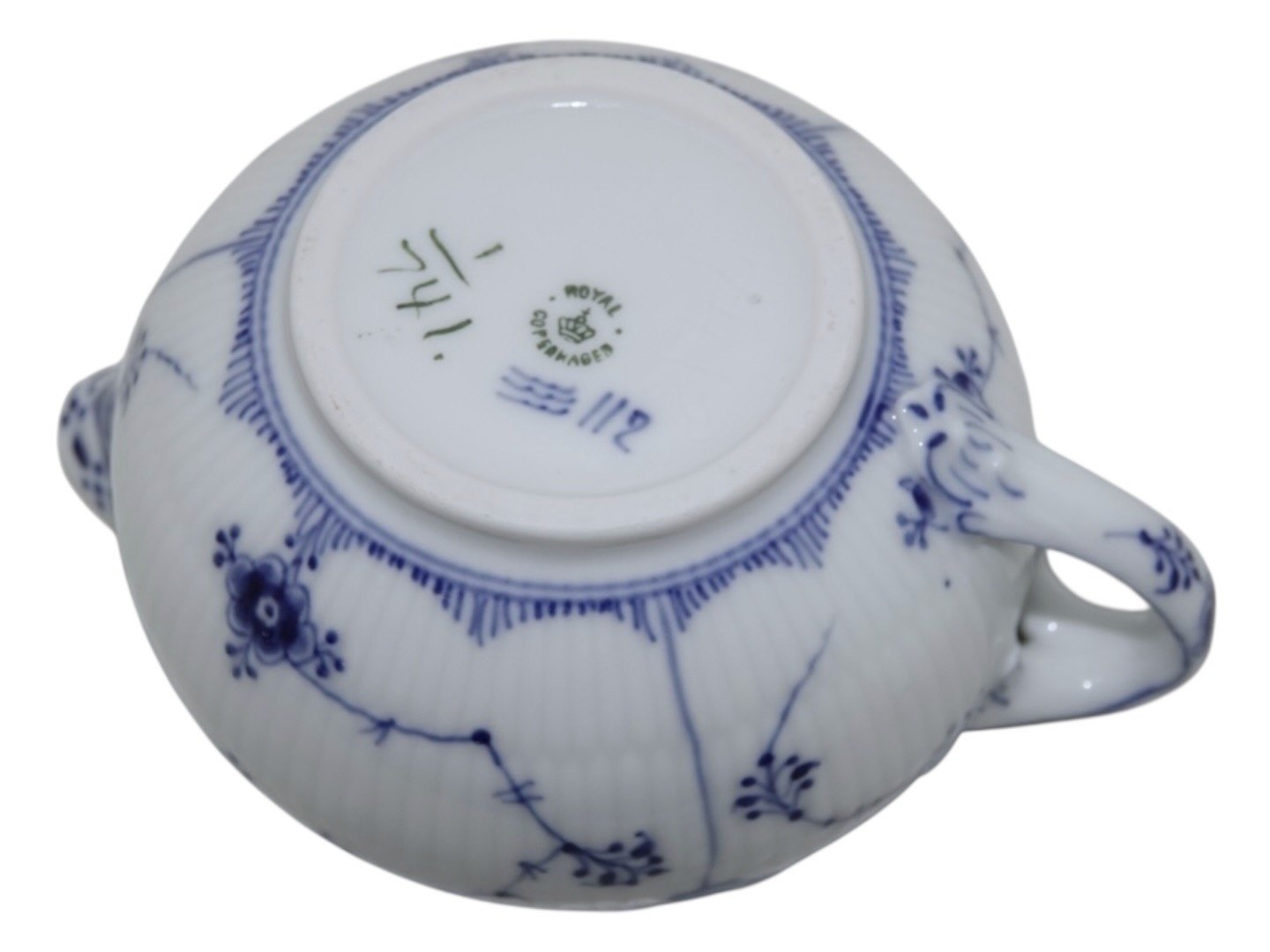 Beskrivelse: Royal Copenhagen Musselmalet Halvblonde, sjælden flødekande.