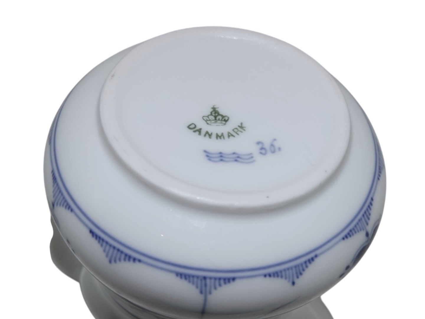 Beskrivelse: Royal Copenhagen Musselmalet Riflet, sjælden flødekande.
