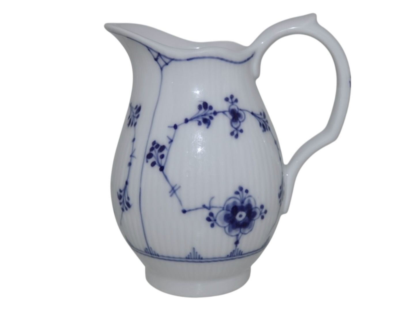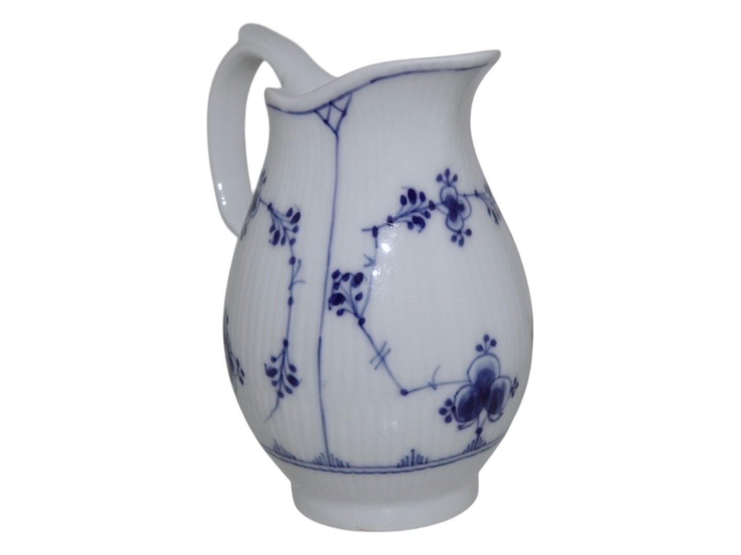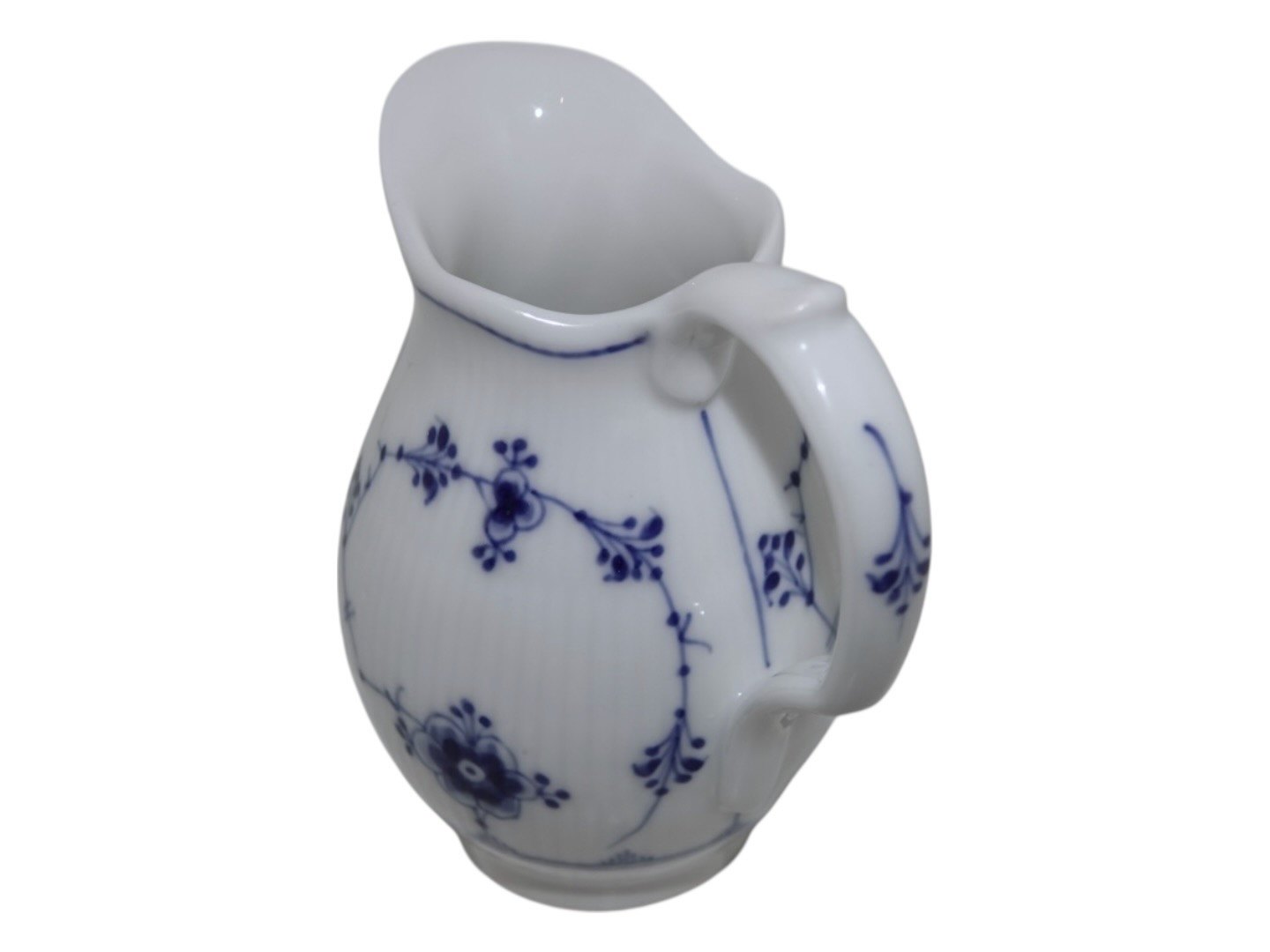 Beskrivelse: Royal Copenhagen Musselmalet Riflet, sjælden flødekande.