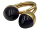 Description: Bent Knudsen, large 14 carat gold ring with two purple round amethyst stones. The ring is made in a thick quality.