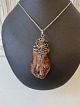 Silver necklace with large amber pendant wrapped with silver thread. Stamped 925. Dimensions of the amber lump 4 x 8 cm. Length of the necklace 60 cm. Width 2 mm.