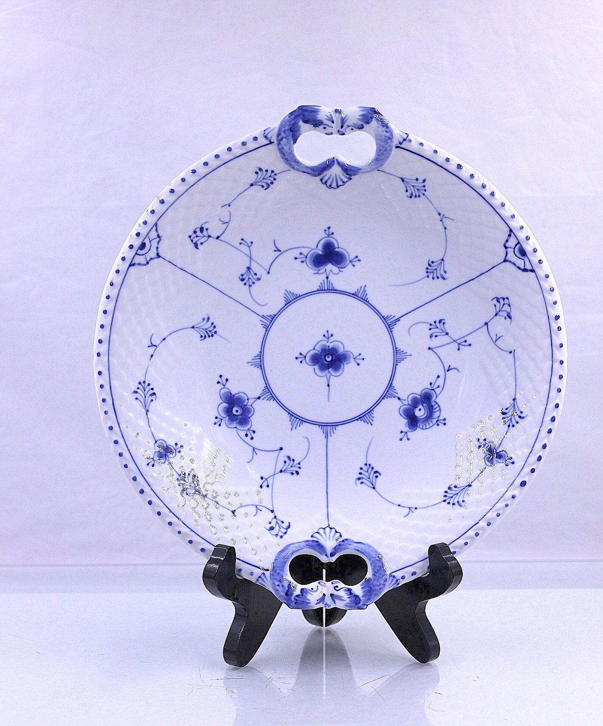 Rundt kagefad af porcelæn fra stellet Blåmalet. Nr. 101