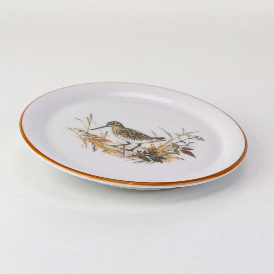 Rund asiet i porcelæn med motiv af en sneppe fra stellet Jagtstel.