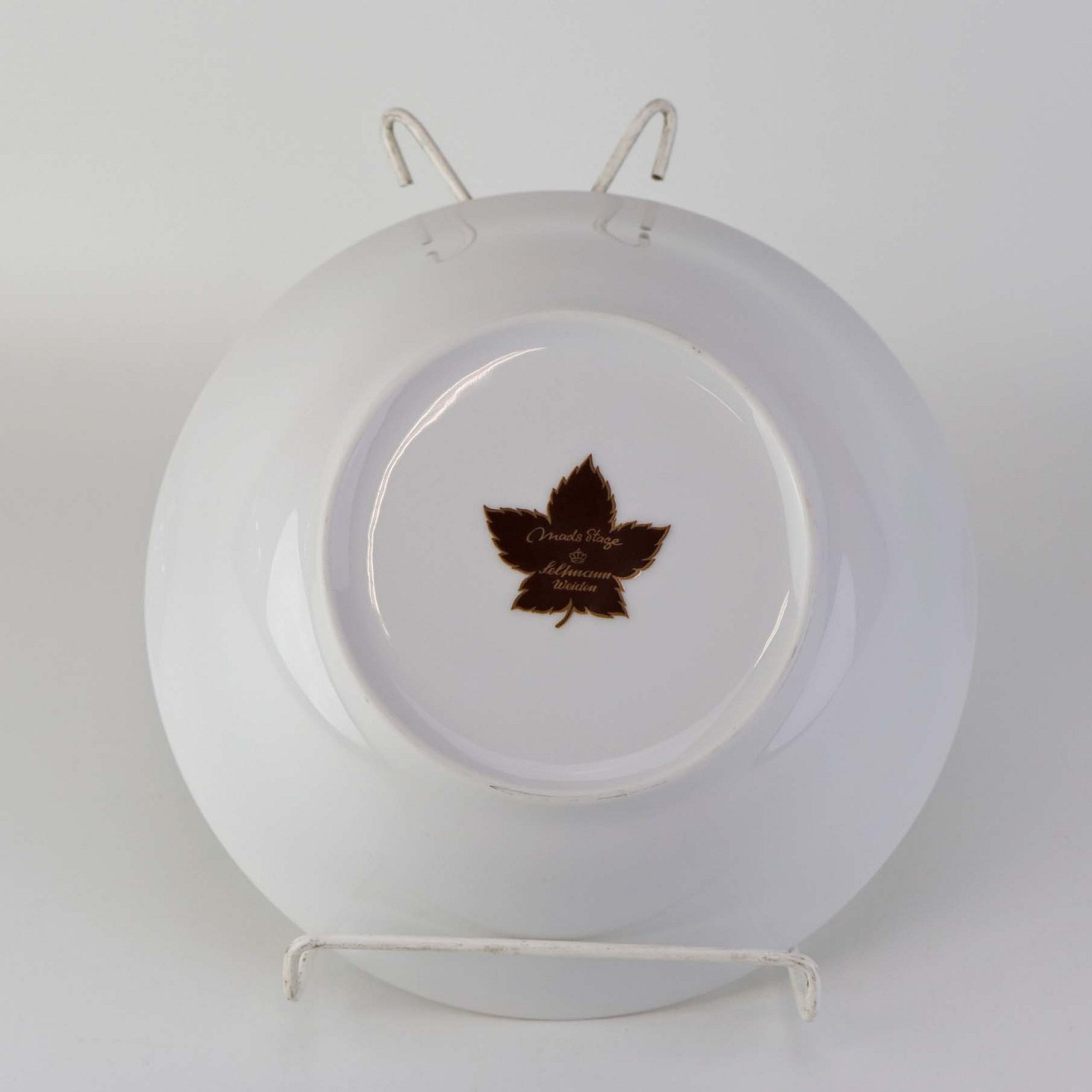 Jagtstellet er i glat hvidt porcelæn med gyldenbrun kantdekoration og motiver af forskellige vilde danske dyr i deres naturlige miljø. Stellet er holdt i dæmpede varme efterårsfarver.