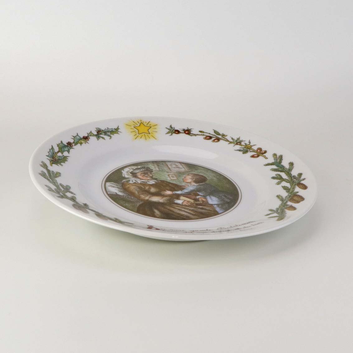 Flad desserttallerken i kongeligt porcelæn fra serien Peters Jul med motiv af bedstemor. Nr. 5