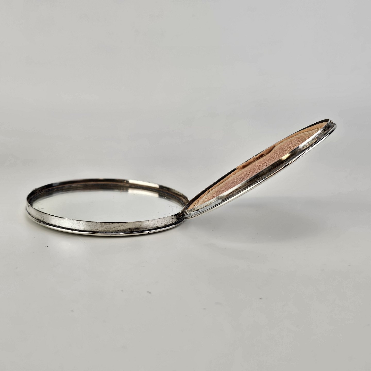 Rund pudderdåse med spejl i sterling sølv med monogram på bunden
