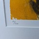 Litografi i sorte, røde og gule nuancer i metal ramme. 71/200