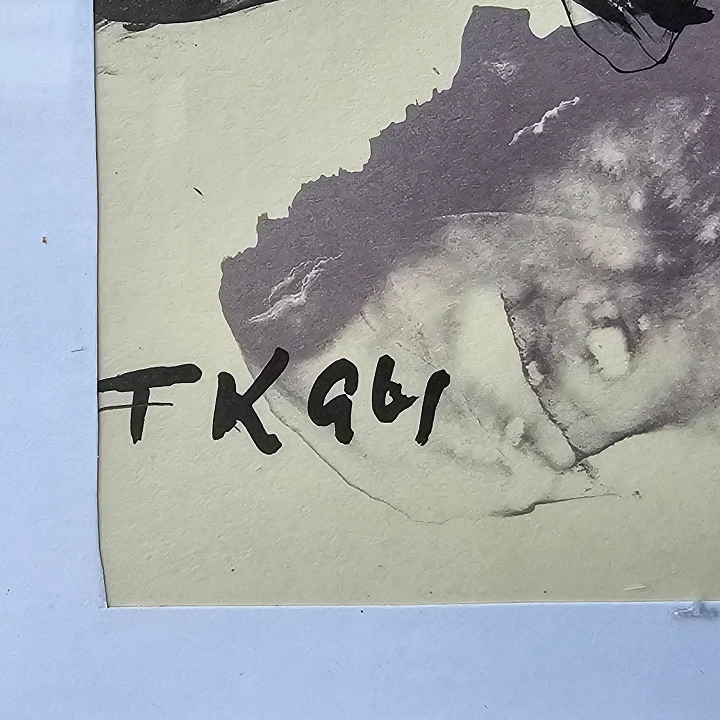 Akvaral på papir med abstrakt motiv af to mennesker i sort og grå. Monteret i sølvramme