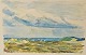 Akvarel maleri på papir med motiv af Slettestrand. Monteret i sortmalet træramme, dateret 1956
