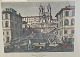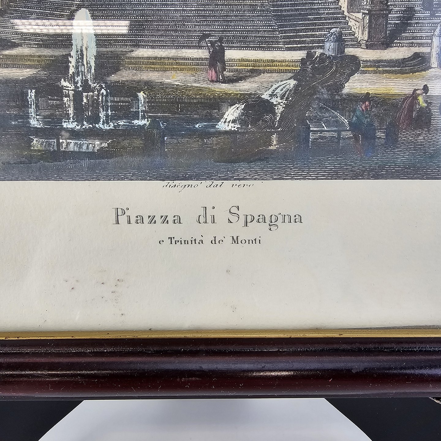 Bogtryk på papir med motiv af den spanske trappe i Rom, monteret i sort ramme