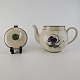 Fajancestel i stelform Viktoria II (Fletværk) med flettet kant og dekoration af en vibeæg blomst i violet og grøn, fremstillet i perioden 1934-1967
