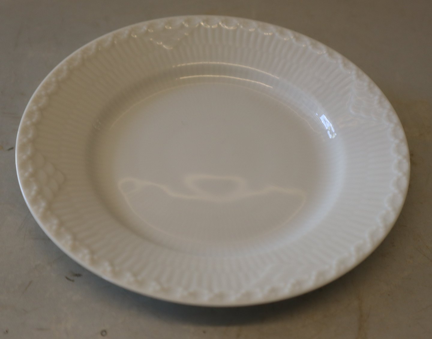 615 Sidetallerken 15,8 cm (575) Kongelig Dansk Porcelæn Hvid Halv blonde. I fin og hel stand White Fluted half lace Kagetallerken