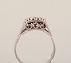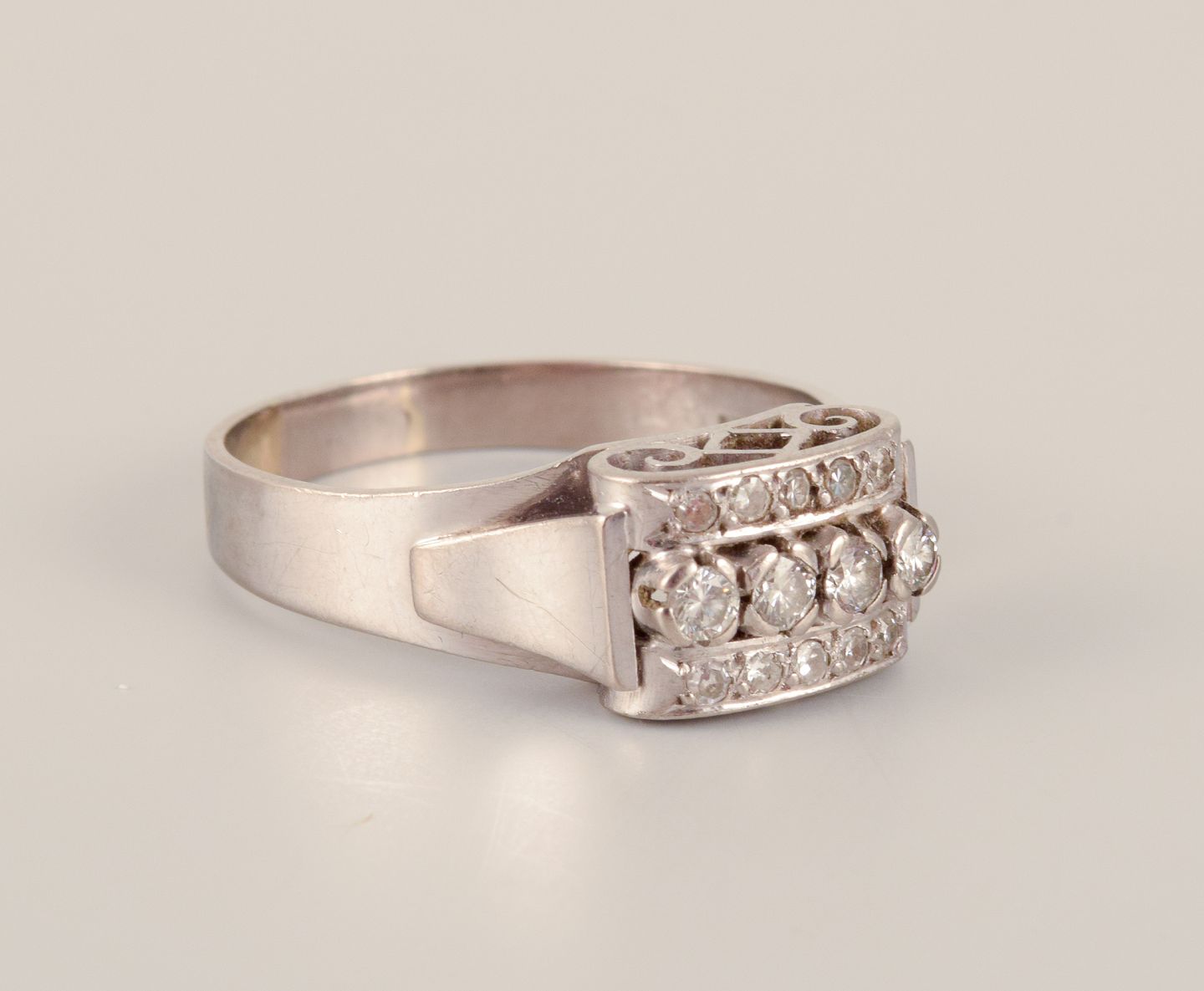Swedish vintage 18 karat diamond ring in white gold adorned with four large diamonds and ten small diamonds. Classic Art Deco style. Gothenburg goldsmith.Swedish hallmarks. Year mark G9 for 1957. Goldsmith mark JGG.