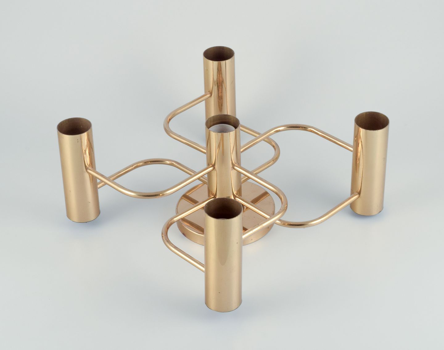 Leola, Germany. Modernist wall/ceiling lamp in brass, five arms. Sciolari style. 1980s. Perfect condition. Max 60 watts. E 27. Dimensions: D 34.7 cm x H 16.5 cm.