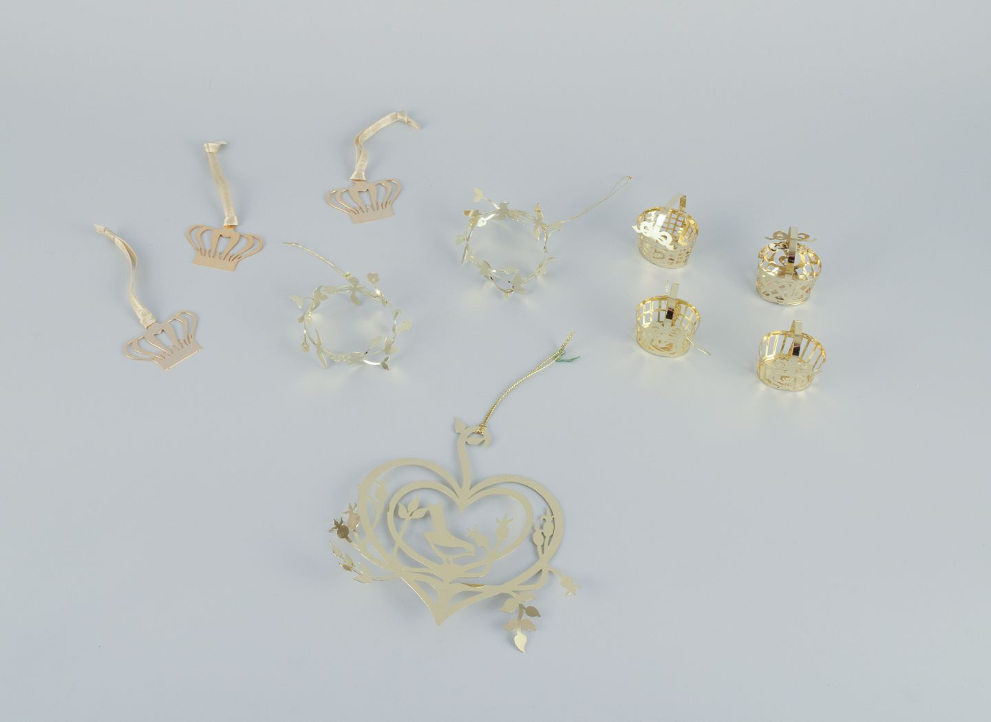 Royal Copenhagen "Royal Christmas". Set of ten brass Christmas ornaments for hanging on the Christmas tree and in the window.Early 2000s.