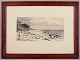 Carl Bloch (1834–1890). Etching of a Danish coastal landscape with a sailboat on the horizon. From the northern coast of Zealand, Hornbæk Plantation.