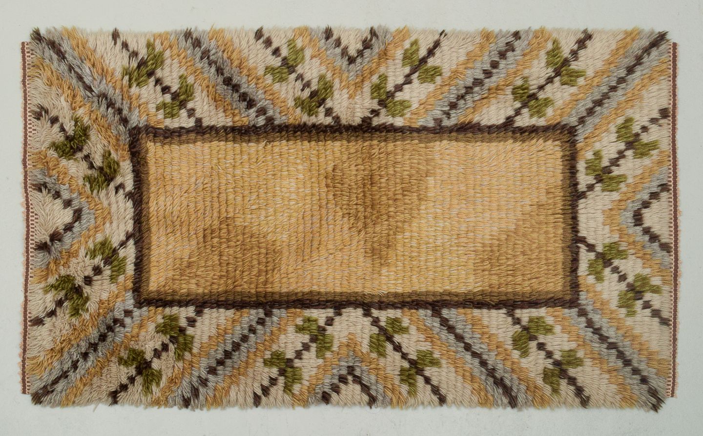 Swedish textile designer. Handmade rya carpet of pure cotton. Multicolored.