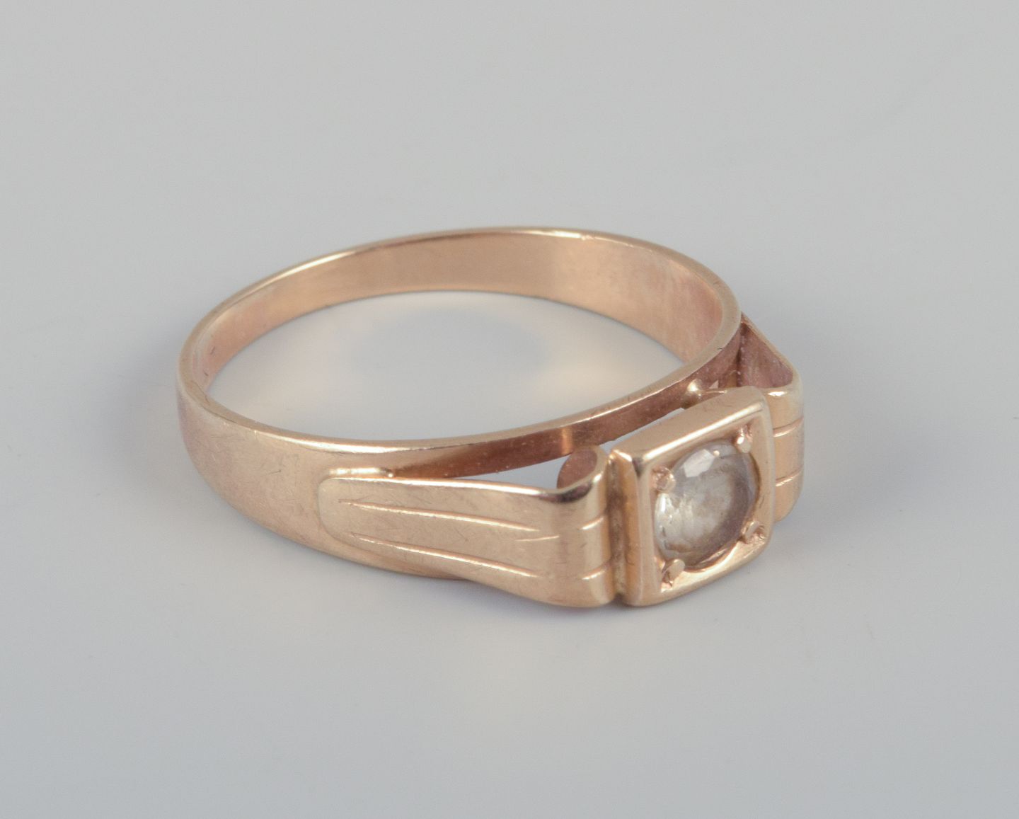 Danish goldsmith. 14-karat gold ring with a semi-precious stone. In the Art Deco style. Mid-20th century. Hallmarked 585 HS. Perfect condition. Size: 16.5 mm. - (US 6.5).