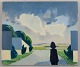 K. Westerberg alias Knud Horup (1926-1973), Danish artist. Oil on canvas. Modernist style. Landscape with figure. 1970s. Signed. Perfect condition. Dimensions: W 60.0 cm x H 50.0 cm.