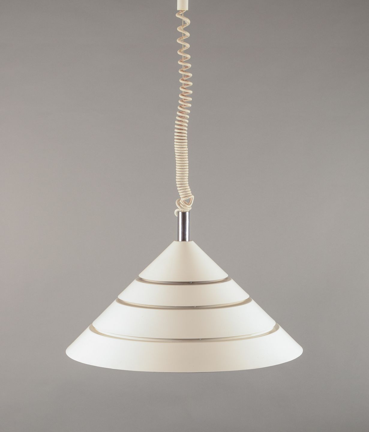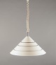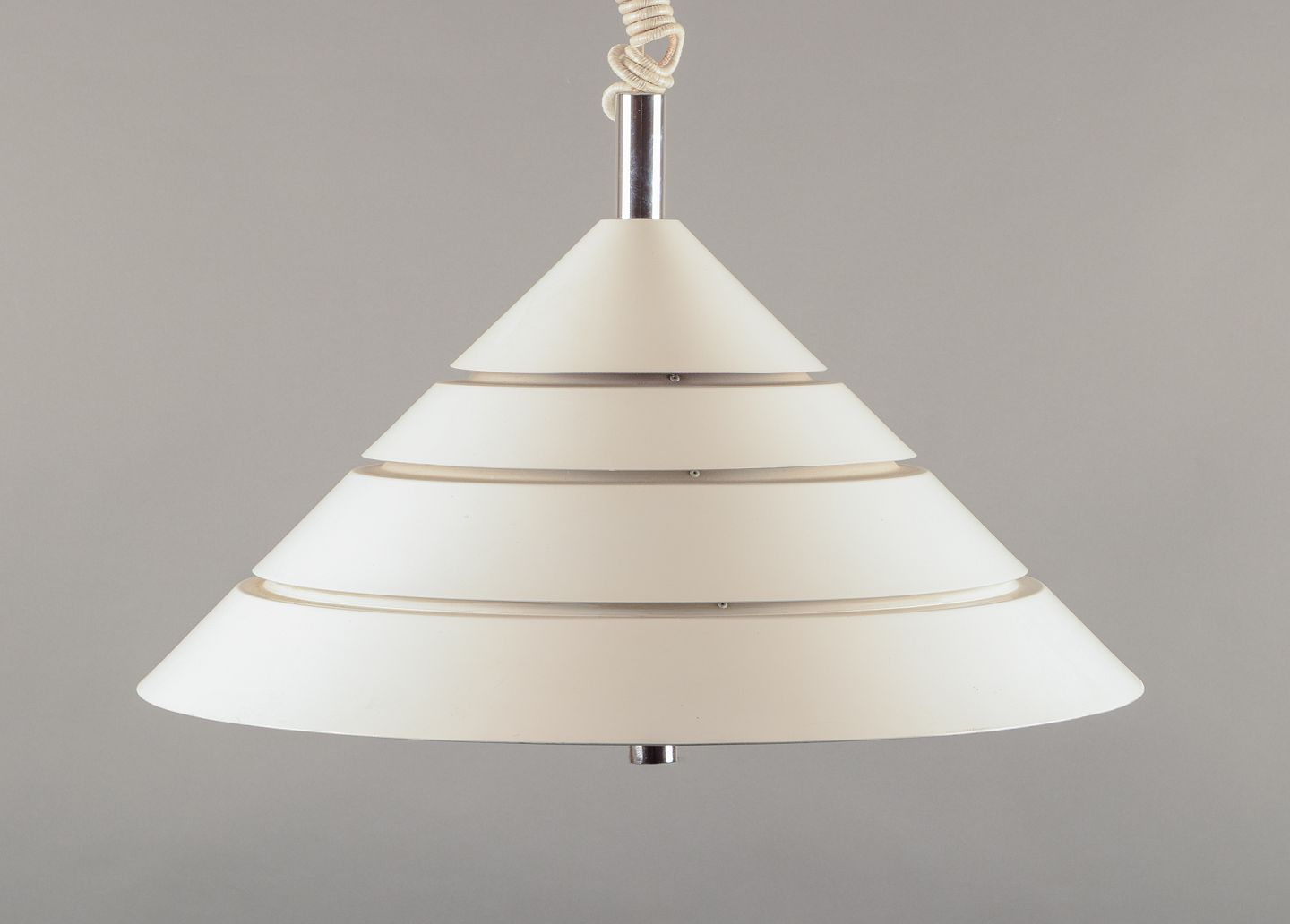 Ceiling lamp in white-painted metal and chrome.
