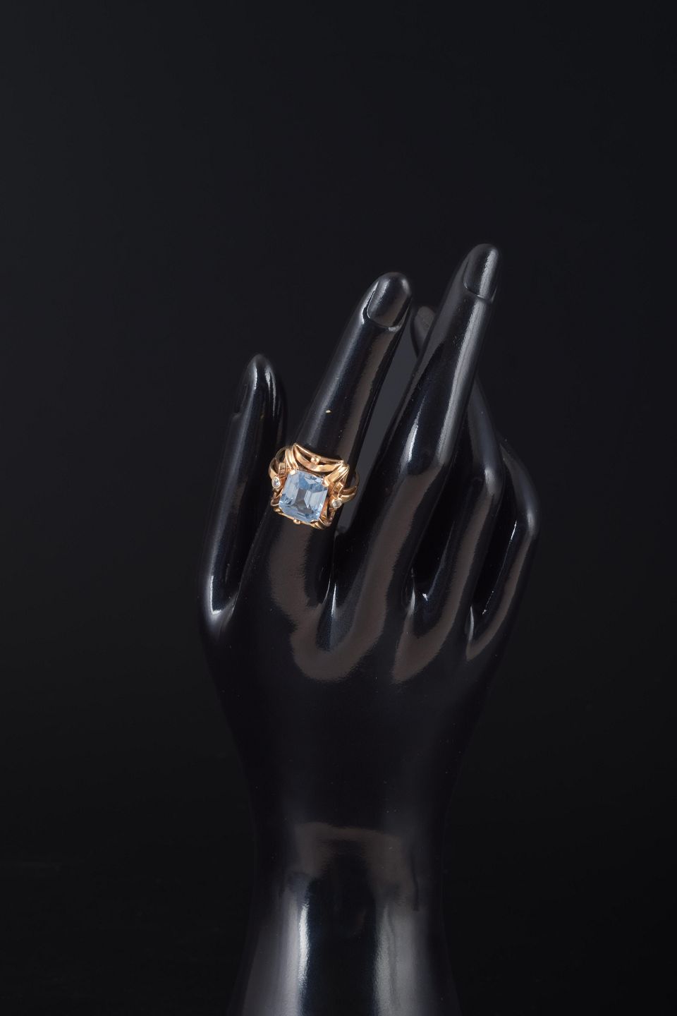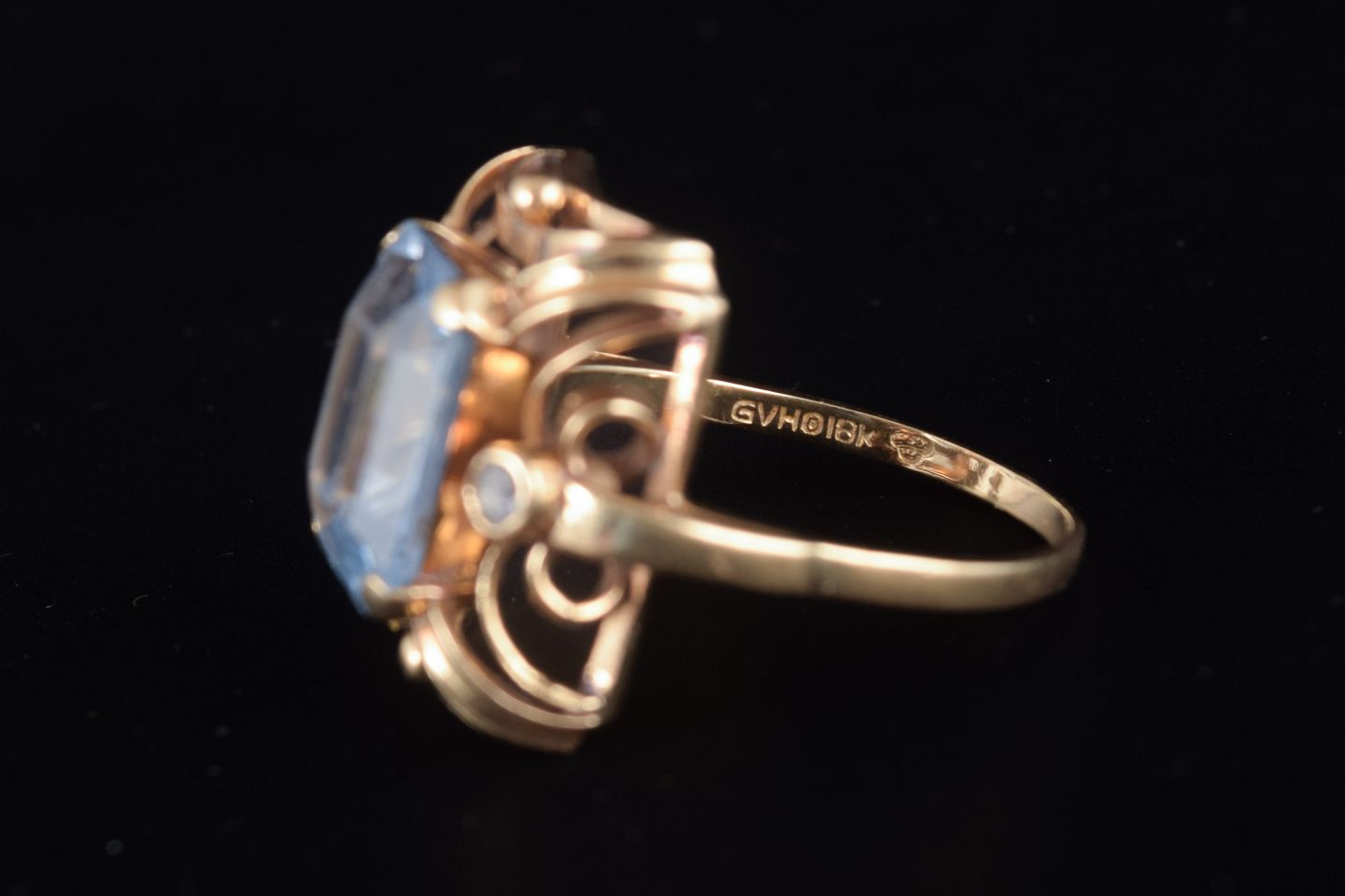 Ring med lyseblå spinel18k guldring, mid-century (ca. 1950/60’erne).