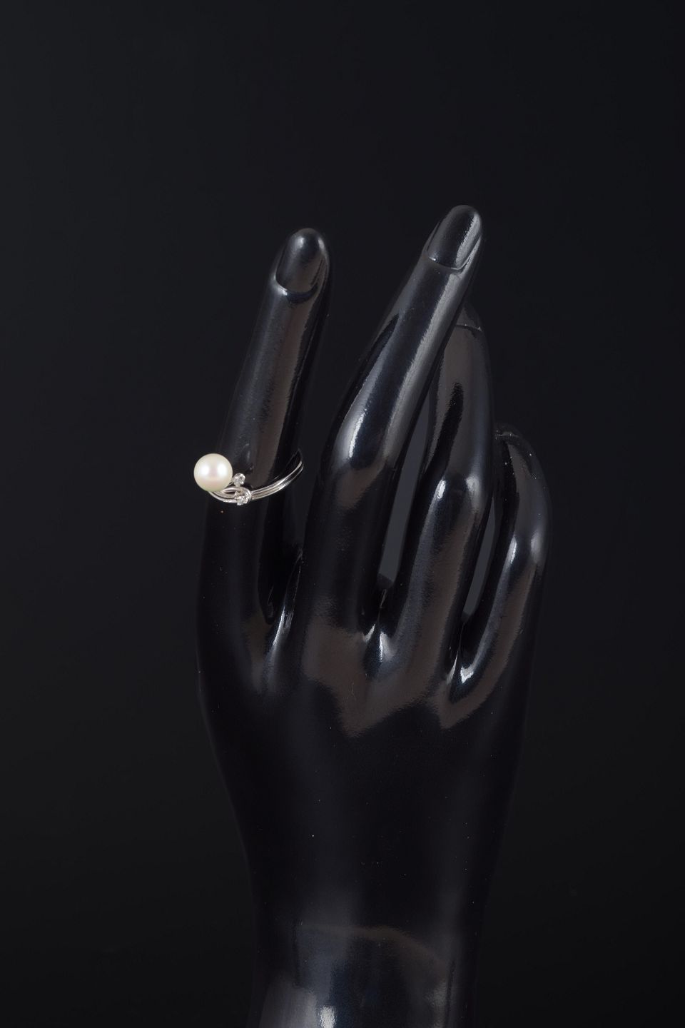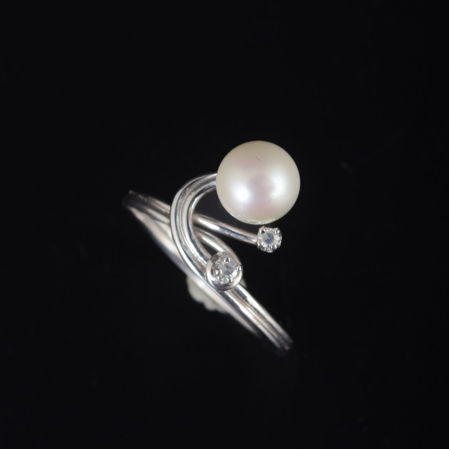 Skandinavisk ring med perle og diamanter, 18k hvidguld.