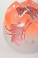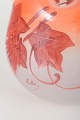 Organisk formet vase i flerfarvet opaliseret glas med håndmalet dekoration af røde vinblade og mørke bær. Den bølgende åbning forstærker vasens dekorative udtryk. Signeret “Légras” i dekoren.