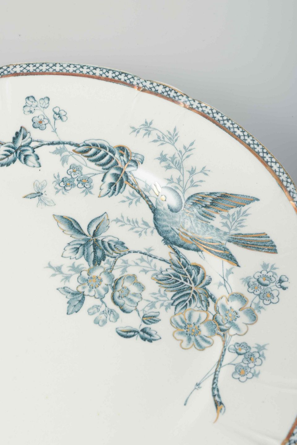 Gustavsberg, grundlagt i 1825 nær Stockholm, var en af Sveriges førende porcelæns- og fajancefabrikker gennem 1800- og 1900-tallet. Serien “Wexiö” blev produceret omkring år 1900 og afspejler tidens interesse for naturmotiver og dekorative overførselstryk i afdæmpede farver.